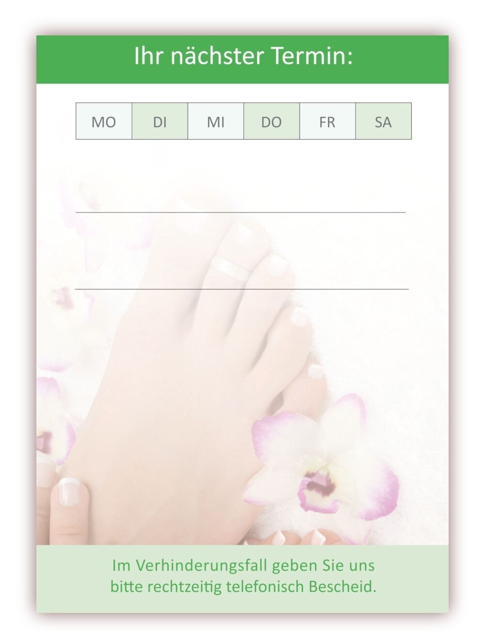 12 x kleine Premium Terminblöcke Wellness Fusspflege grün mit je 50 Terminzettel