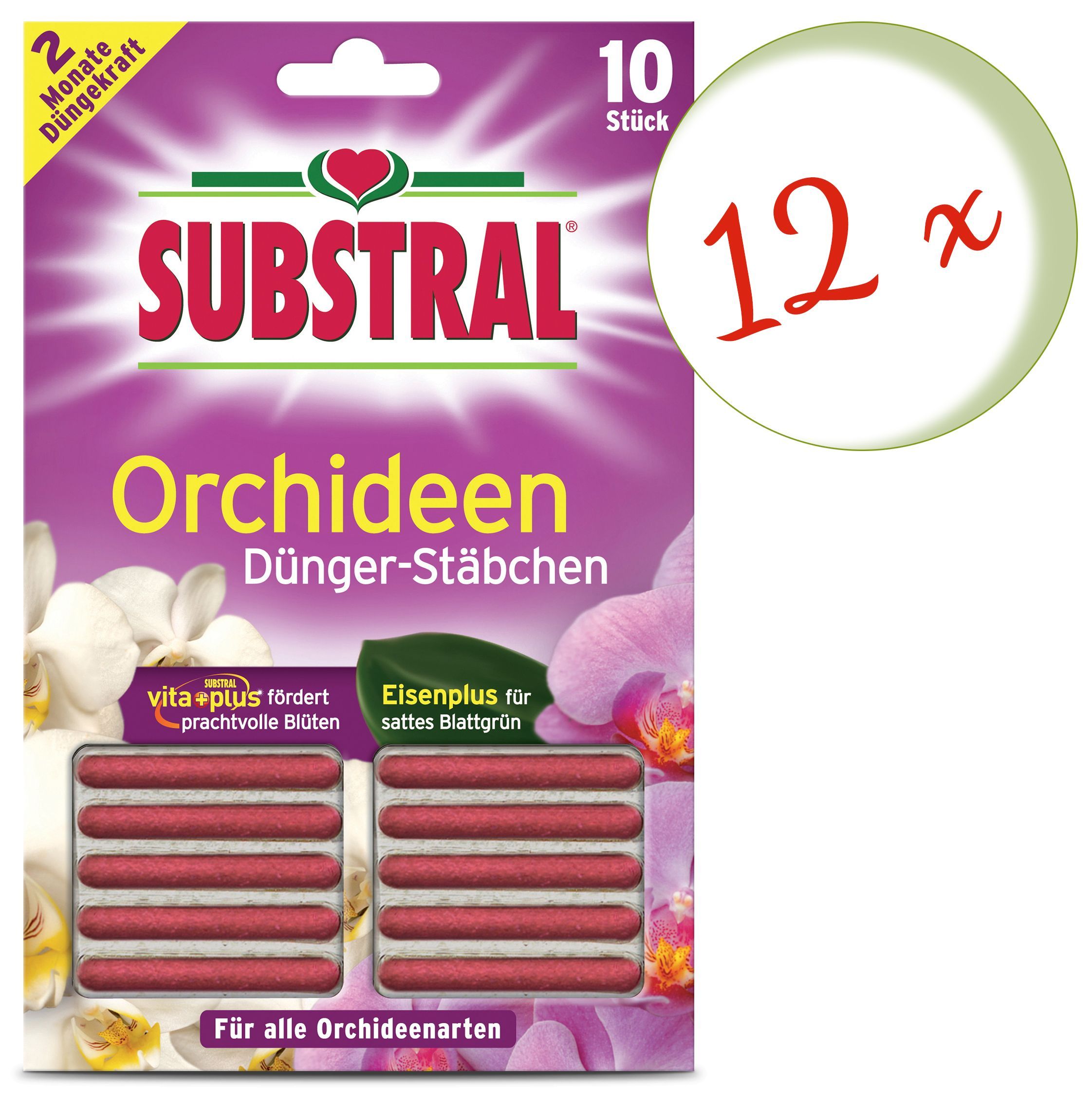 12 x SUBSTRAL® Orchideen Dünger-Stäbchen, 10 Stück