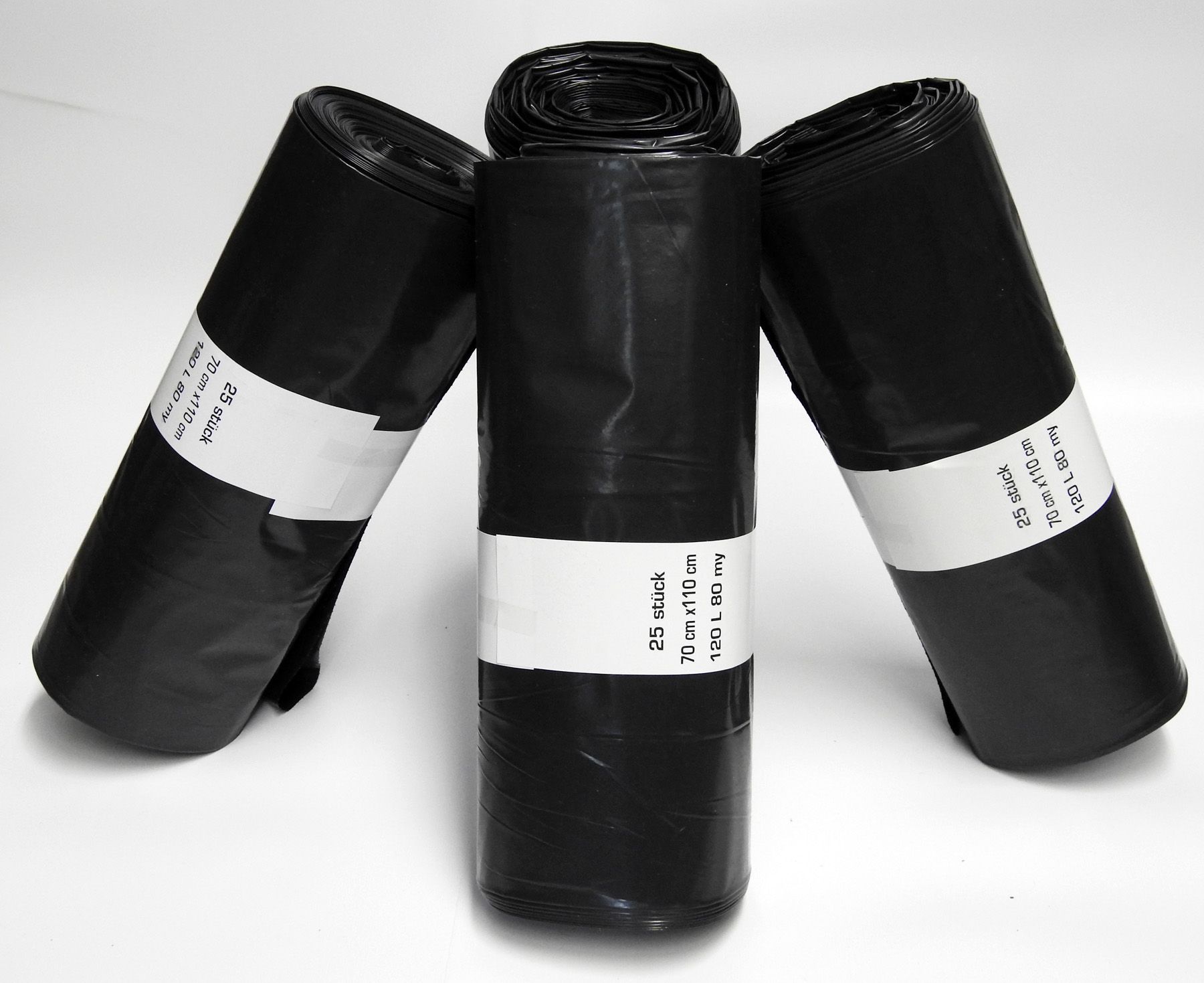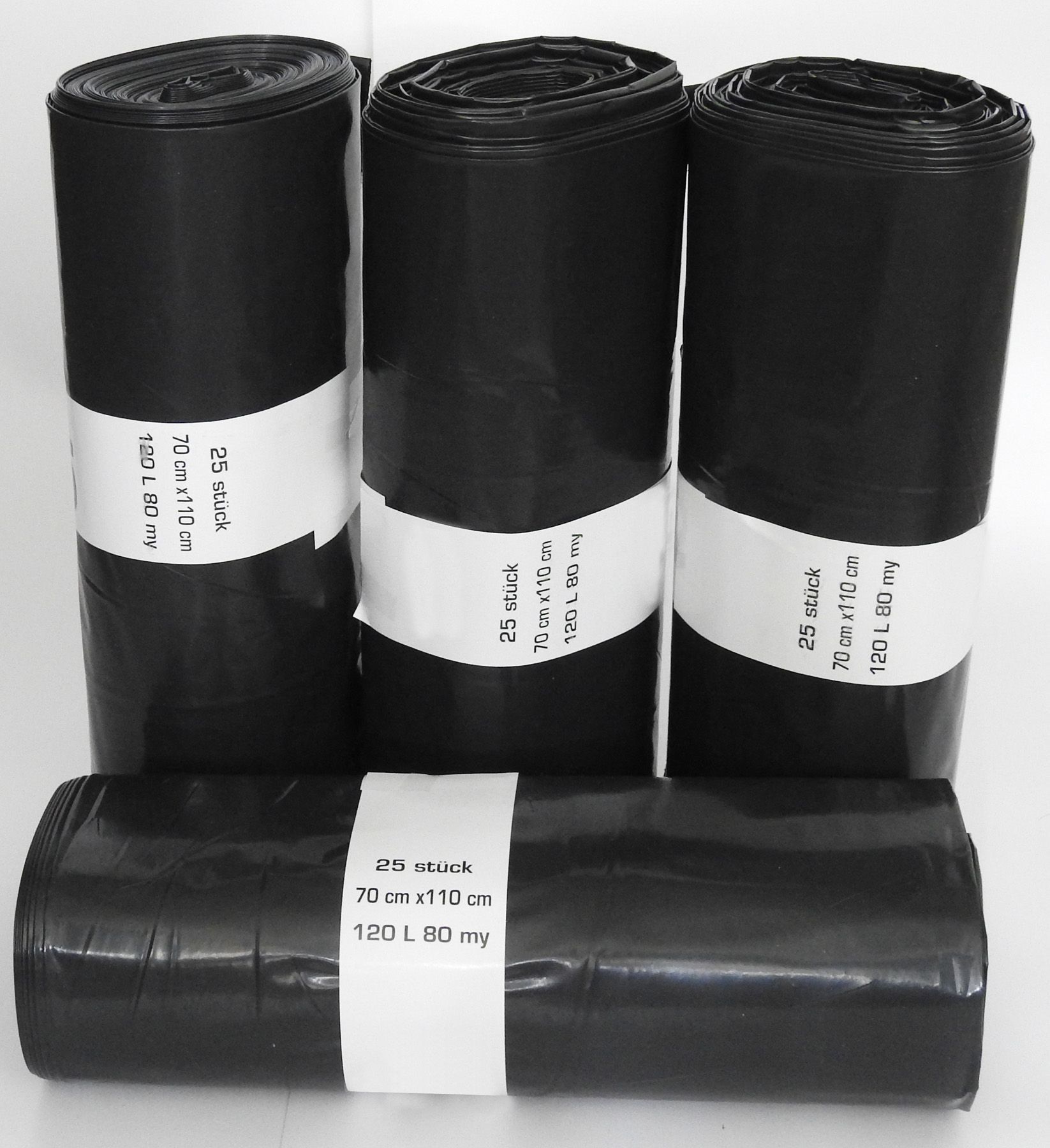 120 Liter Müllbeutel extrem Stark Reißfest 80my Stärke Müllsack 70x110cm Schwarz