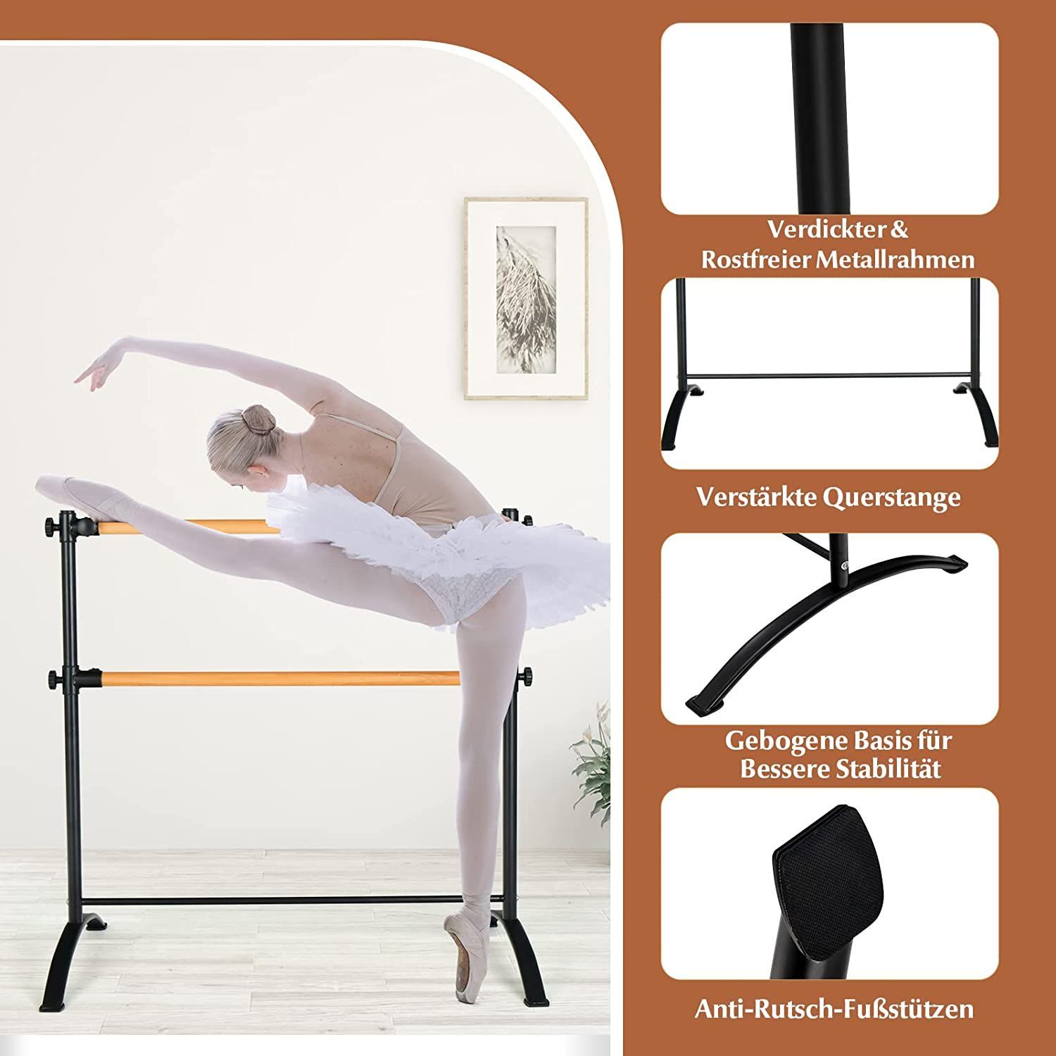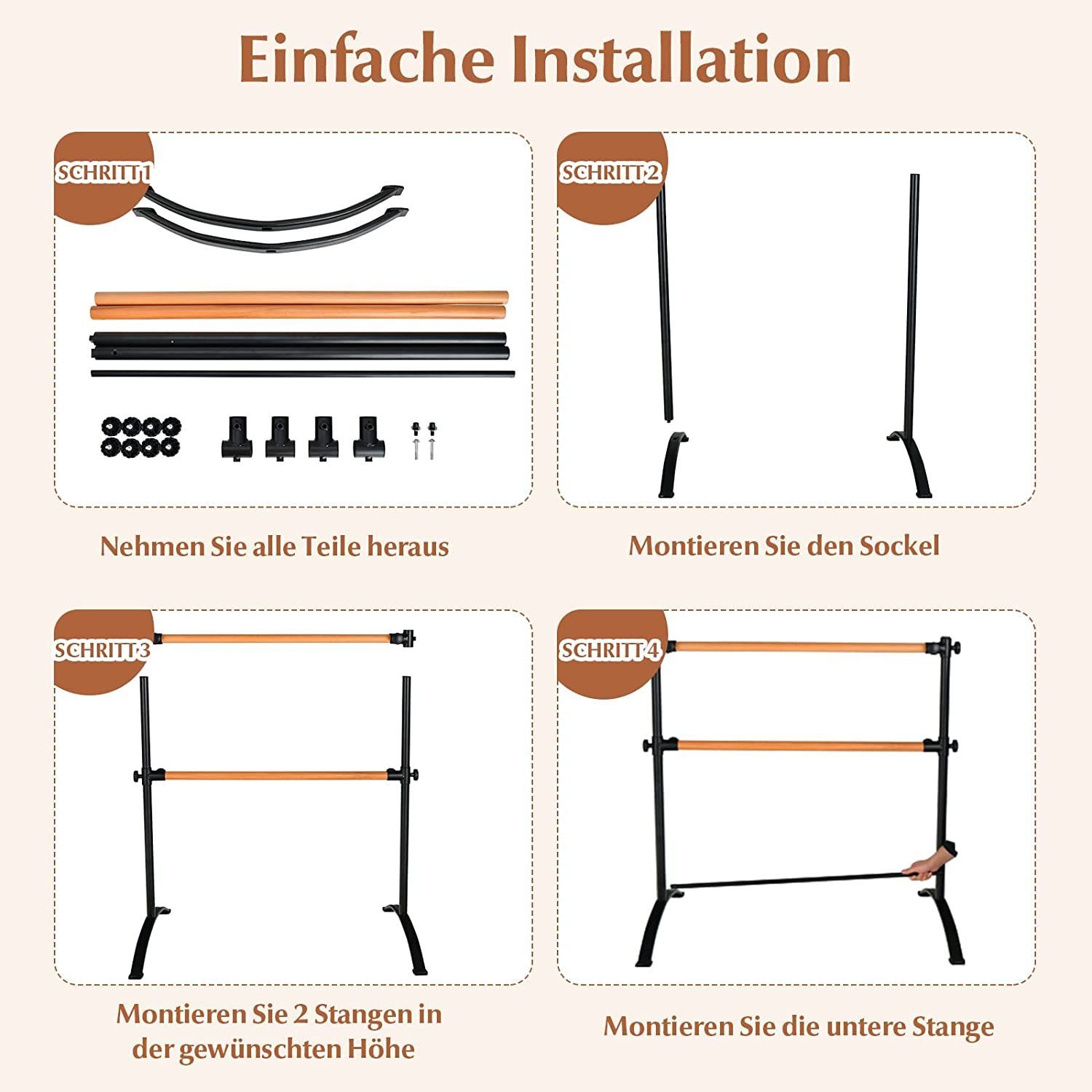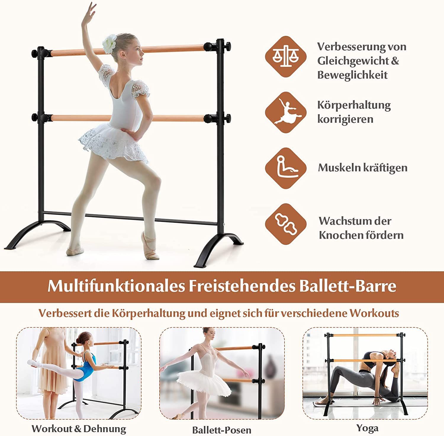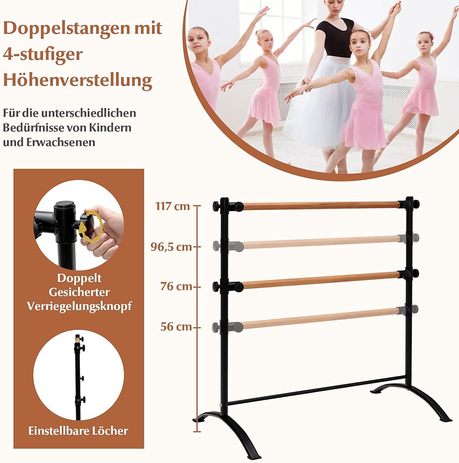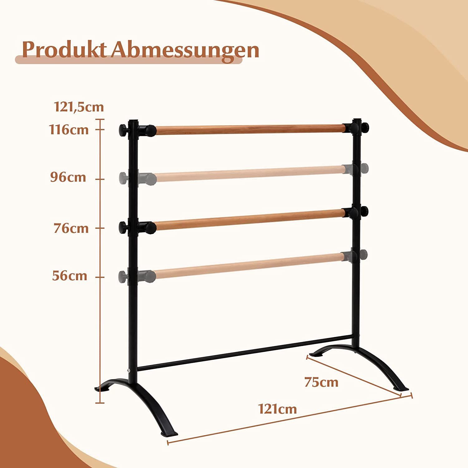 120cm Ballettstange freistehend, Ballet Bar 4 stufig höhenverstellbar, Ballett Barre