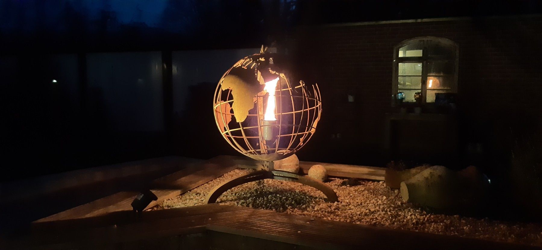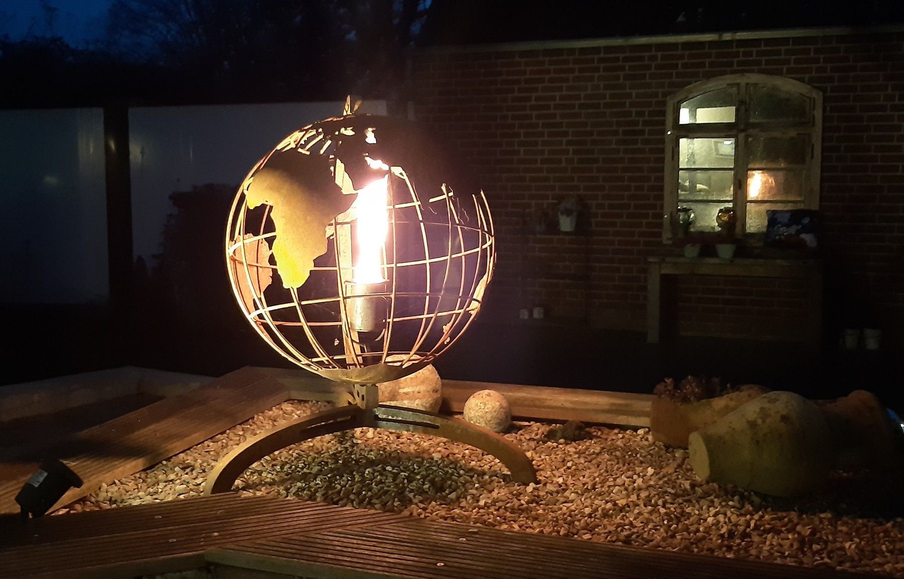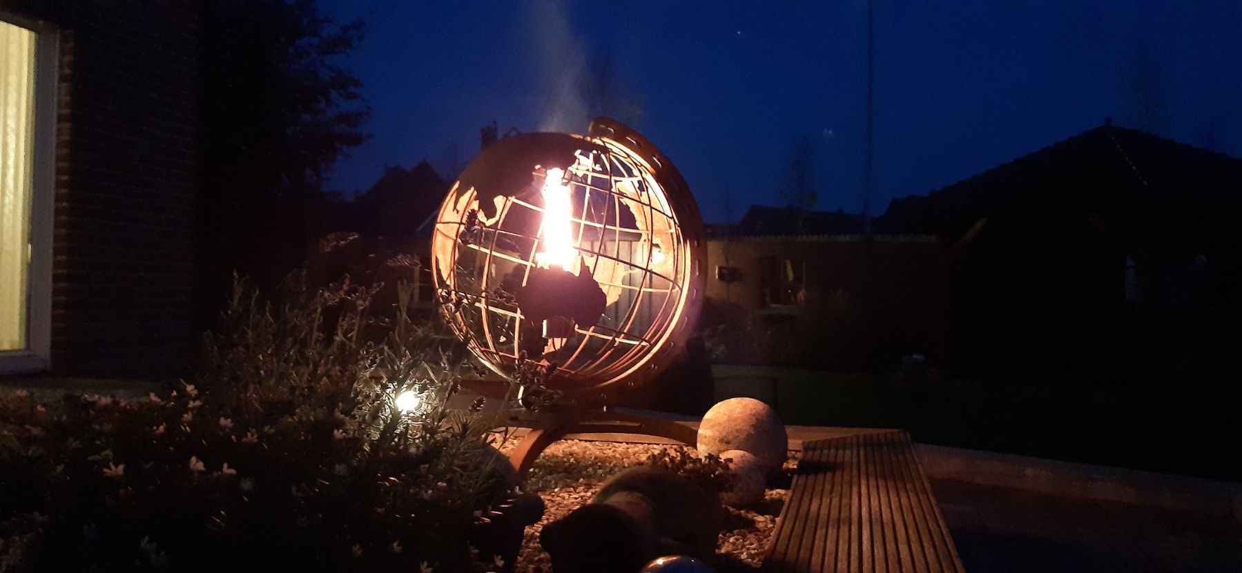 120cm, Globus, Feuerschale, Weltatlas, Weltkugel, Metall, Metallskulptur, Gartendeko