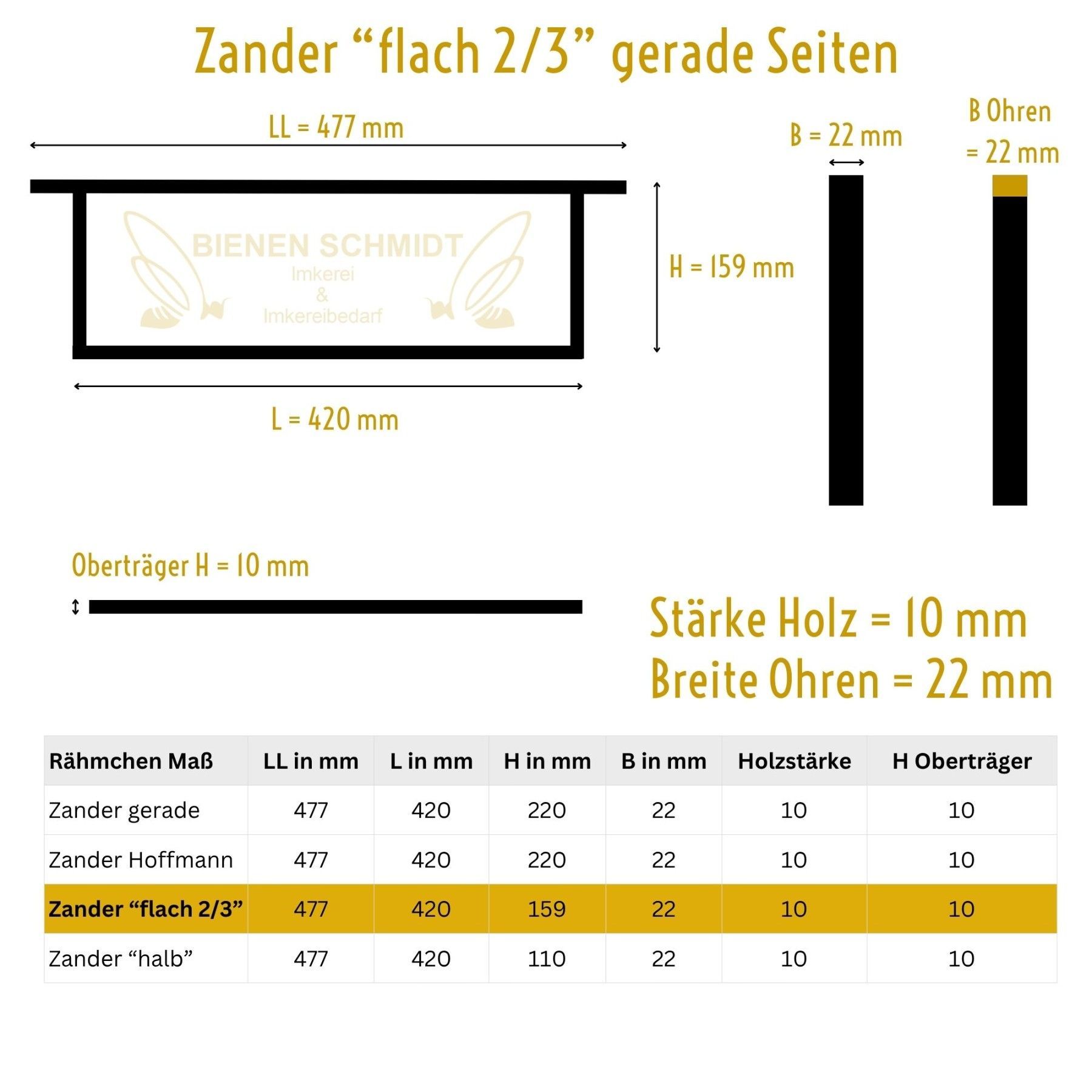120x Zander Rähmchen FLACH 2/3 mit Geraden Seiten 477 x 159 mm