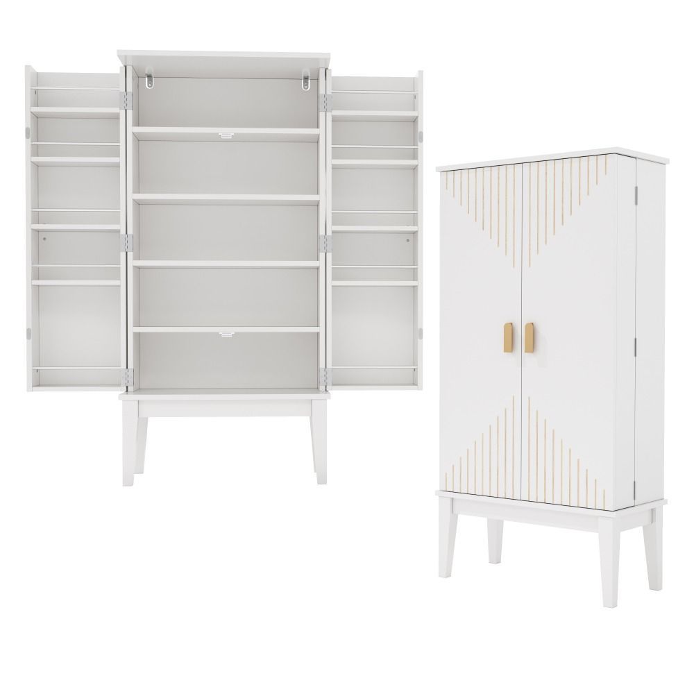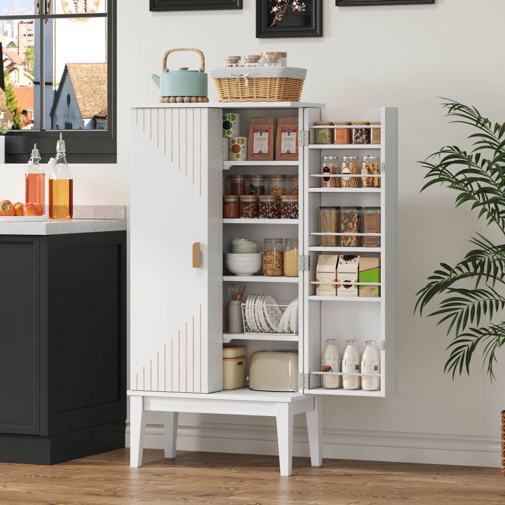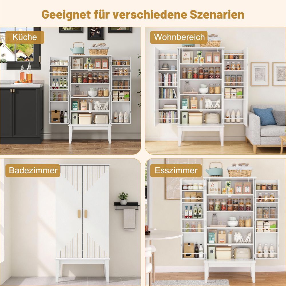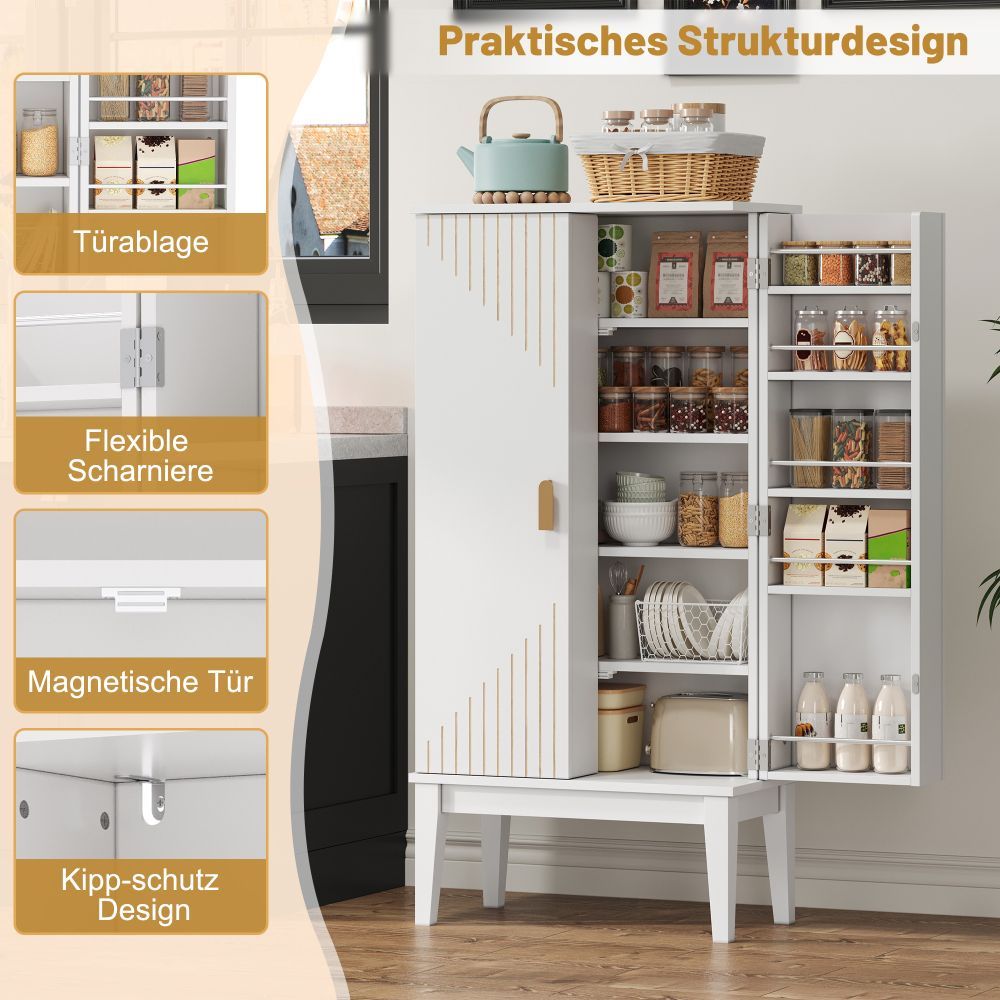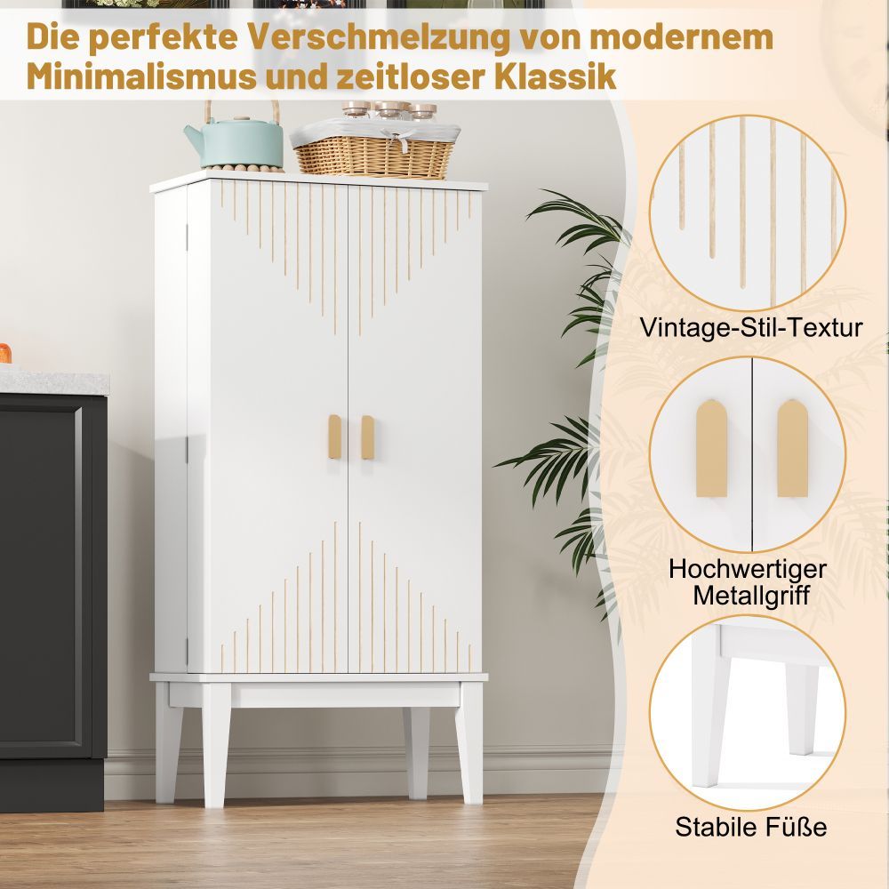 Dieser weiße Küchenschrank aus MDF bietet mit 120 x 59 x 30 cm viel Stauraum auf kleiner Fläche. Das 2-türige Sideboard mit praktischer Türablage eignet sich ideal für Küche, Esszimmer, Wohnzimmer oder Flur.
