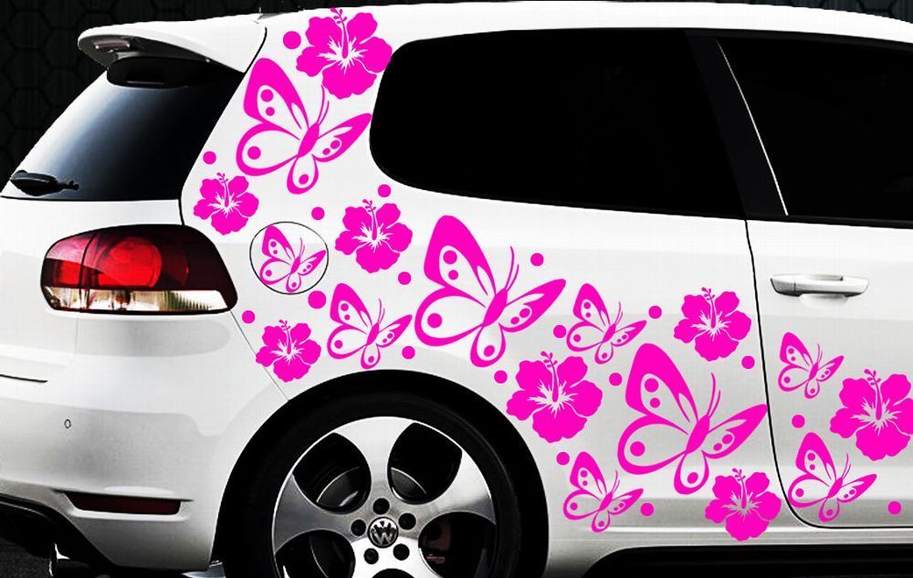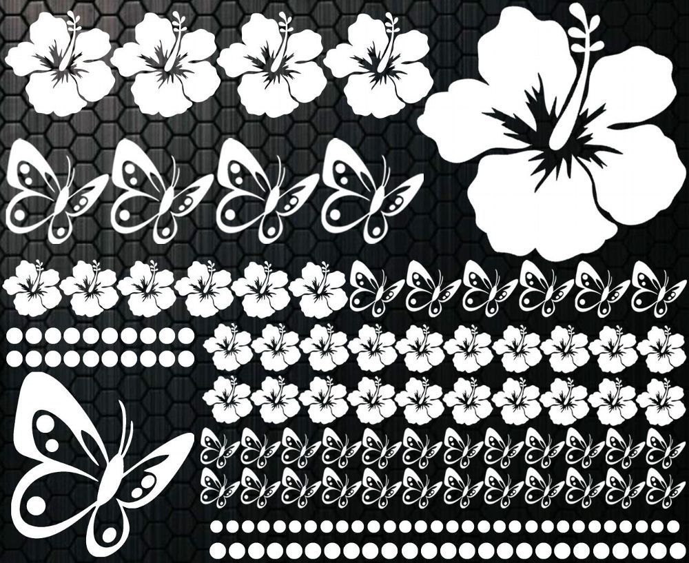 122-parties Autocollants Pour Voiture Hibiscus Fleurs Papillons Hawaï j