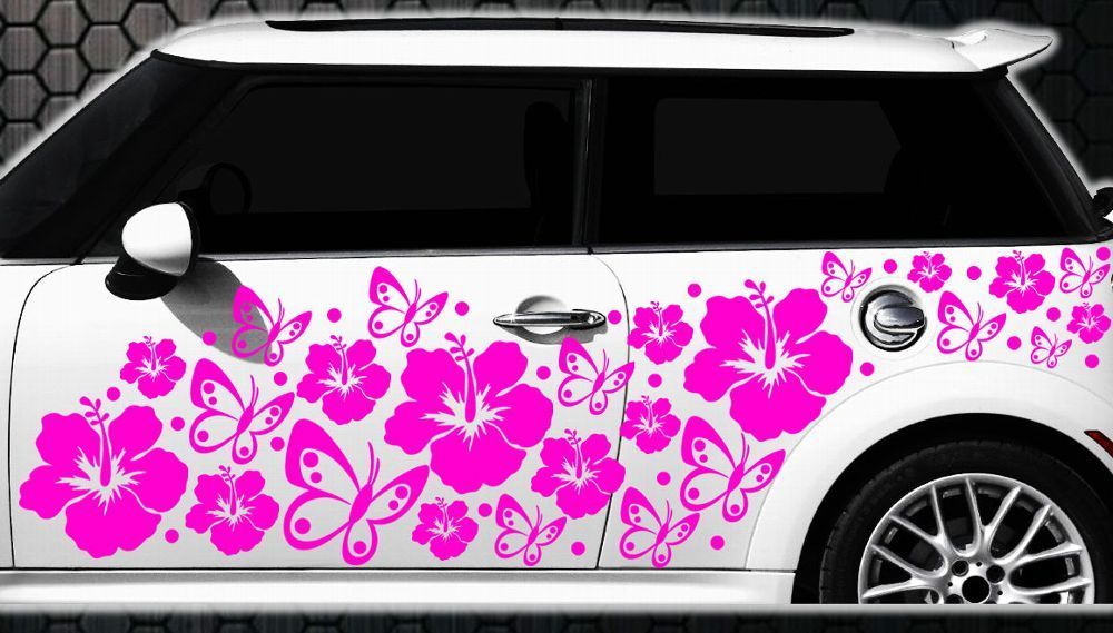122-parties Autocollants Pour Voiture Hibiscus Fleurs Papillons Hawaï v