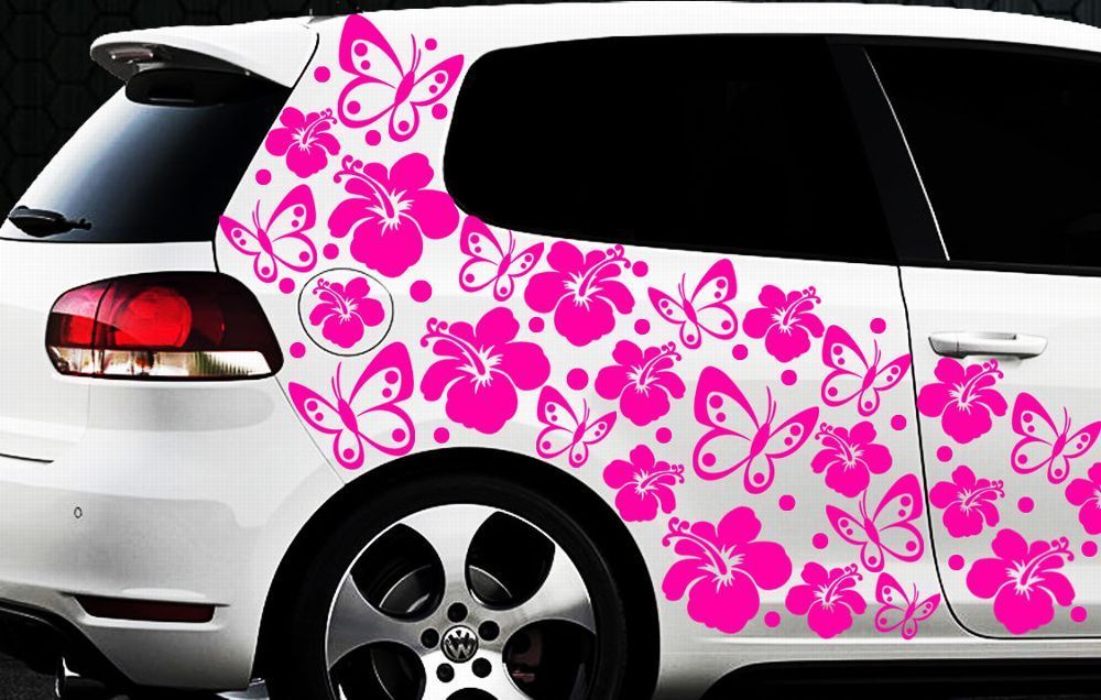 122-parties Kit Autocollants Pour Voiture Hibiscus Fleurs Papillons
