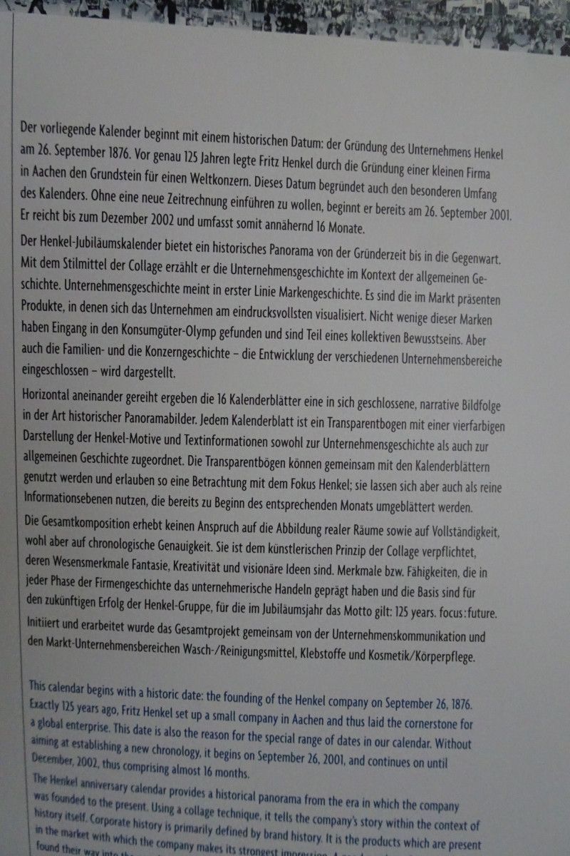 Sammeln & Seltenes ... aus Freude an schönen Dingen ..... altes Sammlerstück, genauer Zustand siehe bitte Fotos Der Kalender Bilder beginnt mit der Gründung im Jahre 1876 Dieser Jubiläumskalender beginnt am 26. September 2001 und reicht bis zum Dezember 2002 Er bietet ein historisches Panorama v... Mehr
