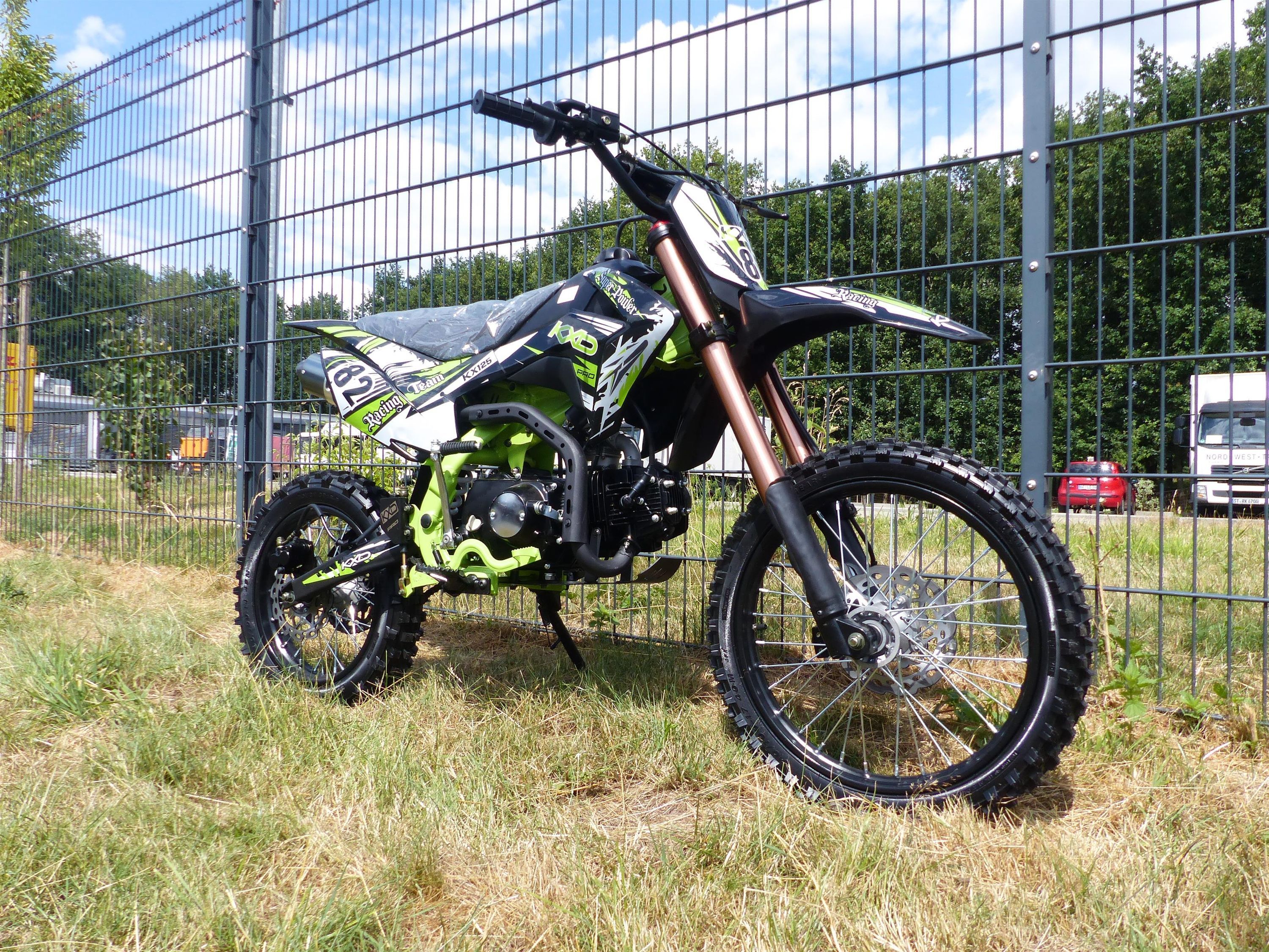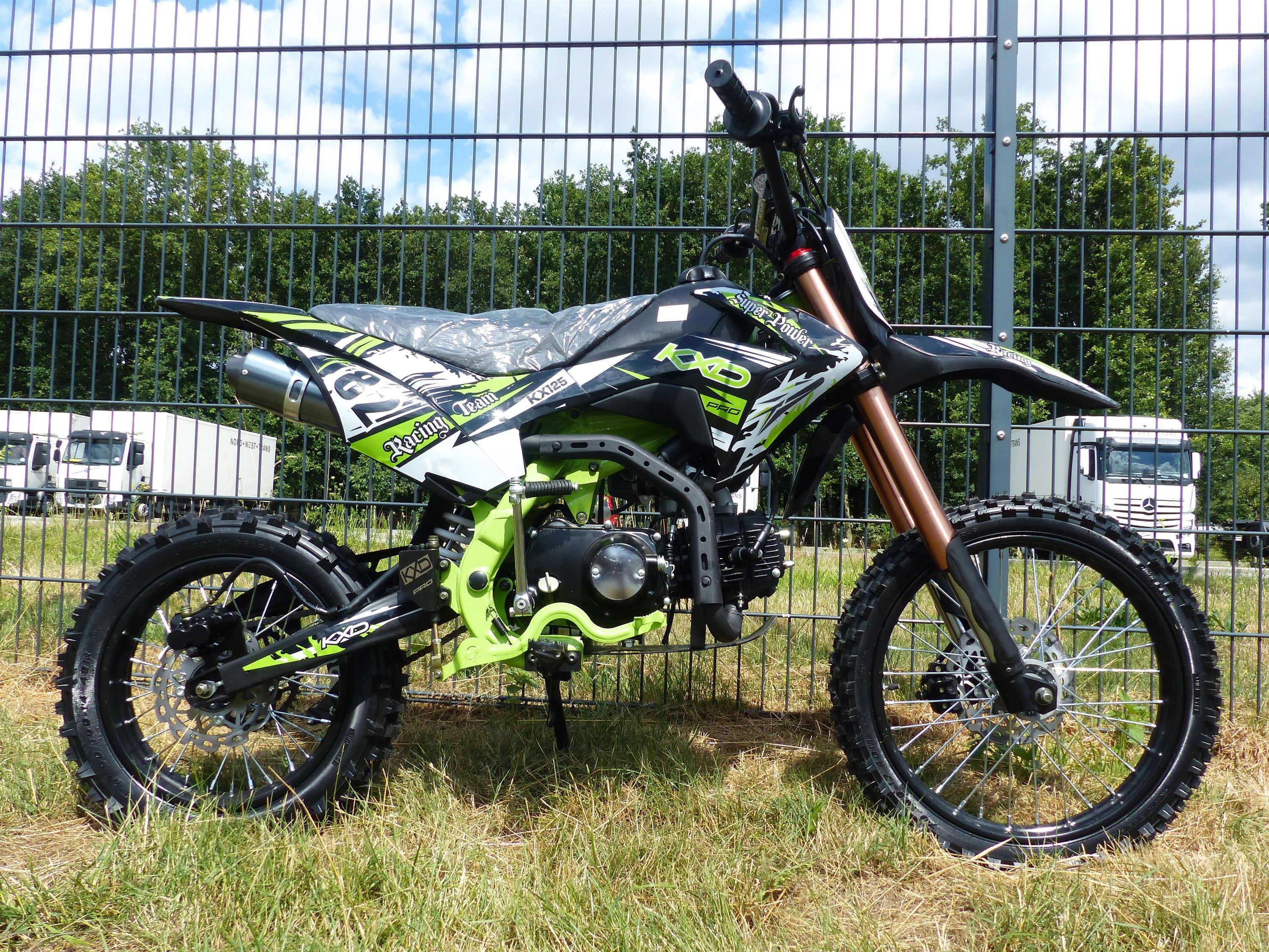 125ccm Dirtbike Cross Bike Pocketbike KXD 609 4 Takt 4 Gang Manuel 17/14" Grün