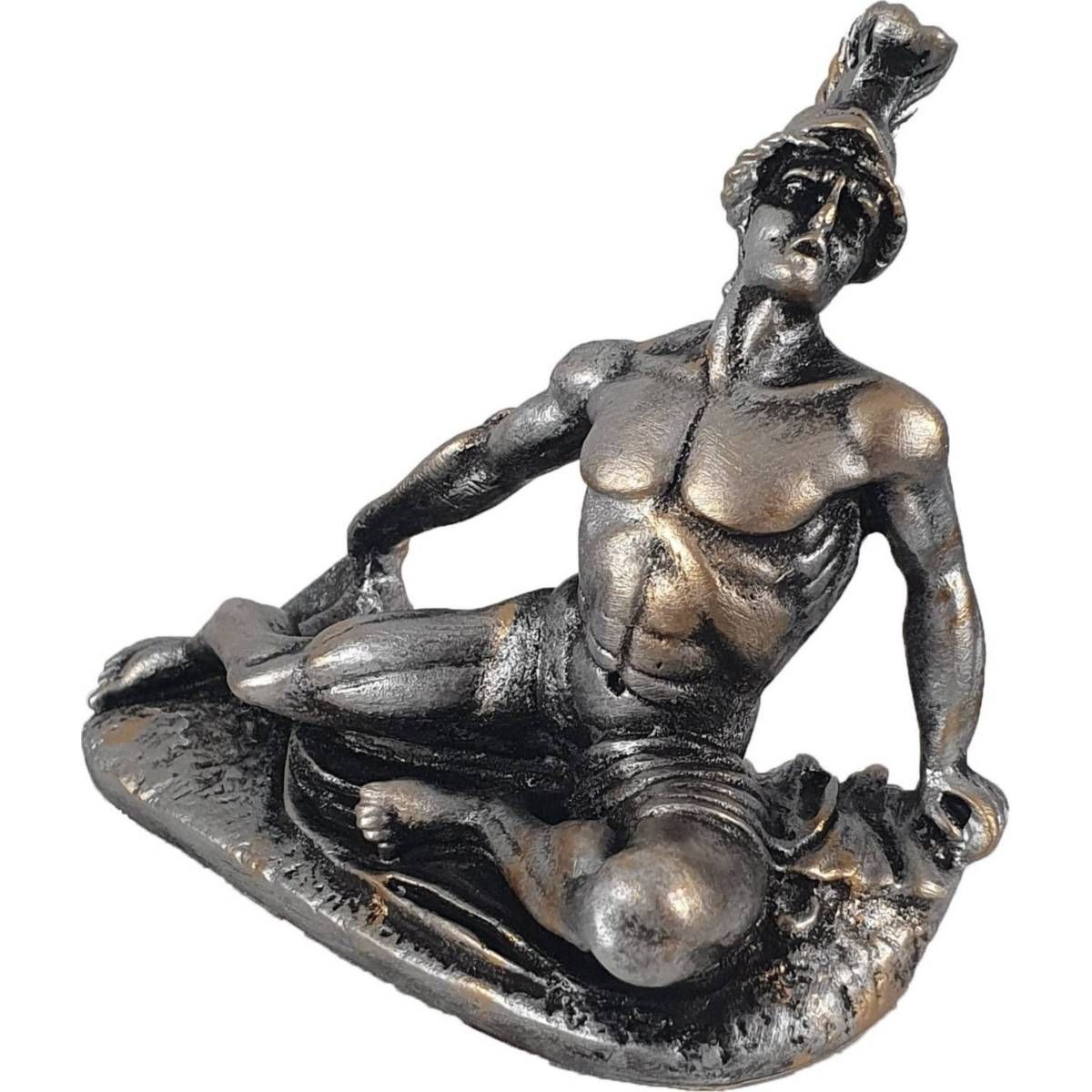 12cm Alabaster Figur Achilles Held von Troja liegt im sterben Silber