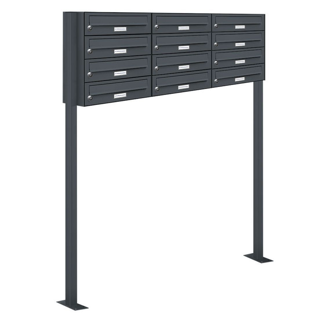 12er Premium Standbriefkasten Anthrazit RAL 7016 freistehend Postkasten 3x4