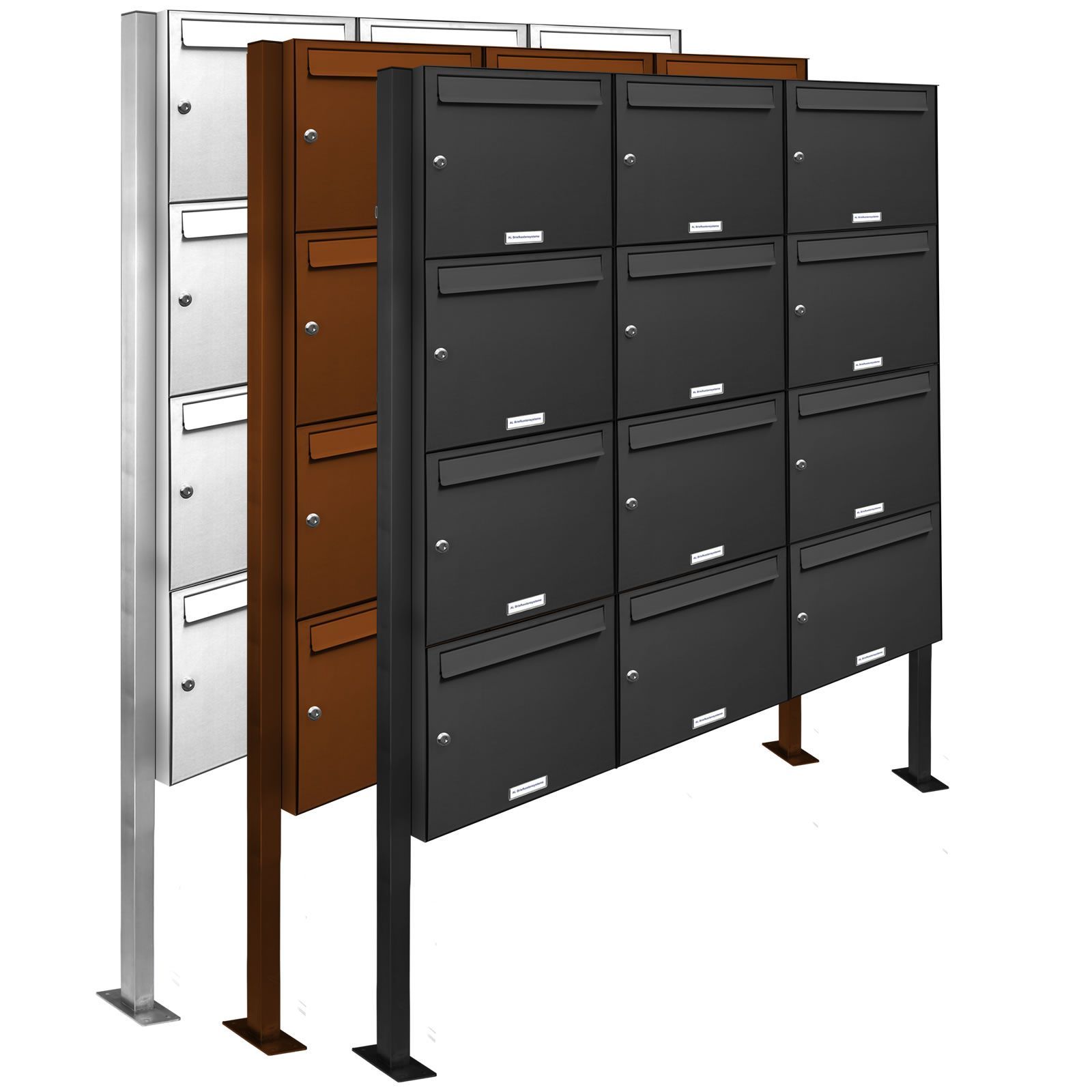 12er Premium Standbriefkasten RAL Farbe freistehend Postkasten Ständer 3x4 S