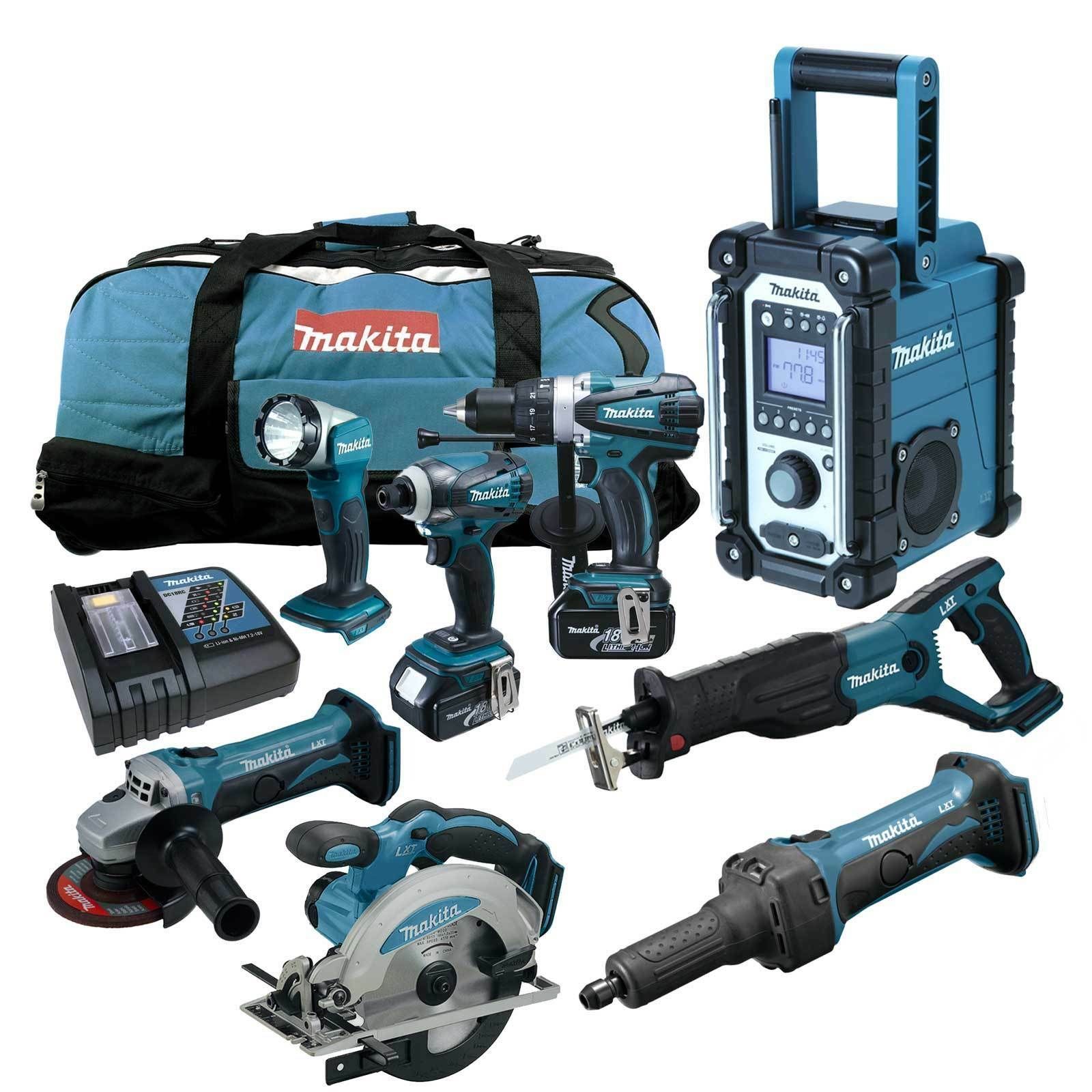 Makita 12tlg. MAKITA 18V Profi Akku Werkzeug Set + DGD800 RMJ Geradschleifer RFE RME