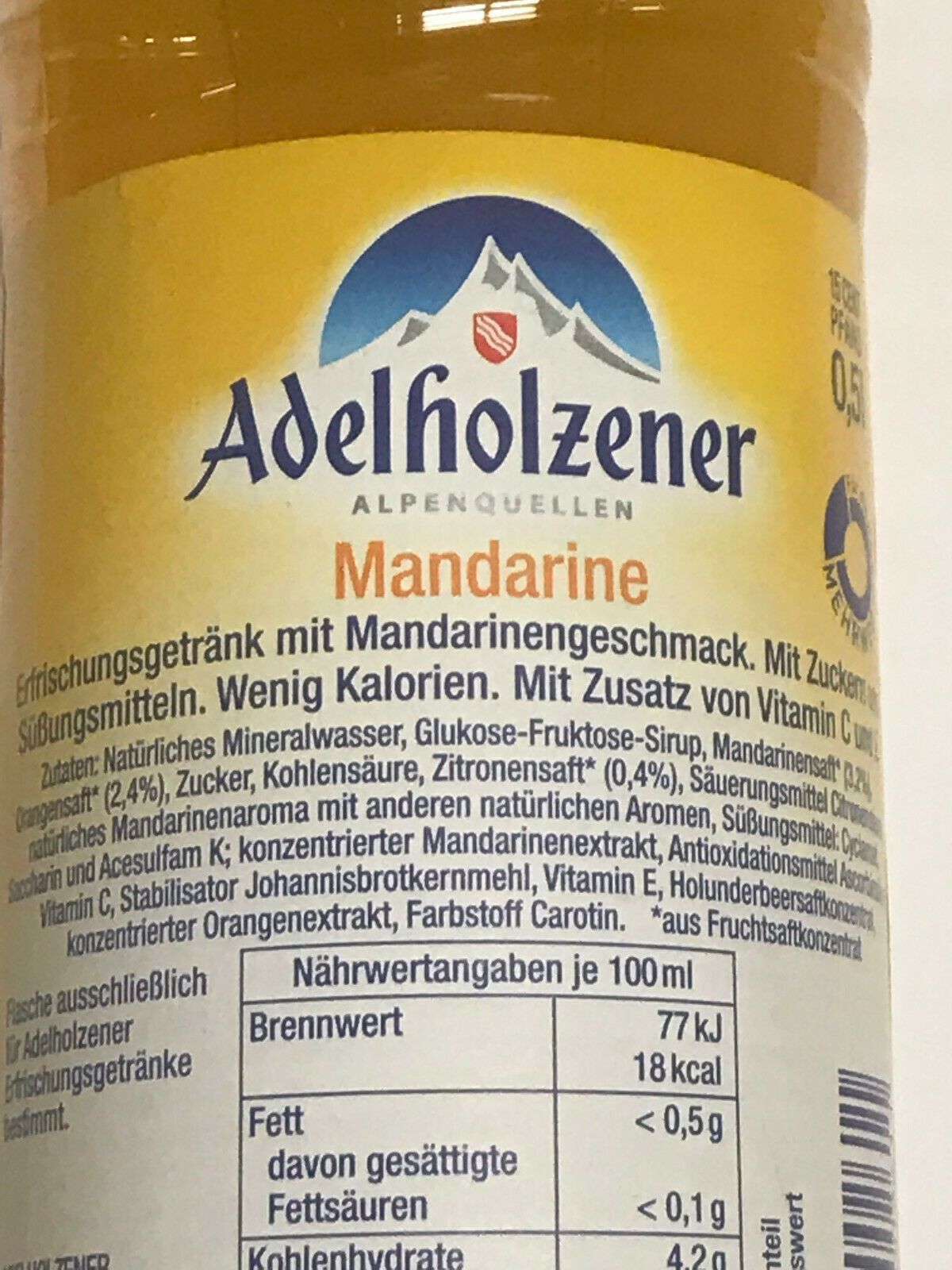 12x 0,50 L. Adelholzener Mandarine PET Flasche - Mehrweg - ohne Kasten