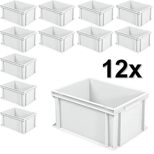 12x Euro-Stapelbehälter mit 2 Griffleisten, LxBxH 400x300x220 mm, 21 Liter, weiß