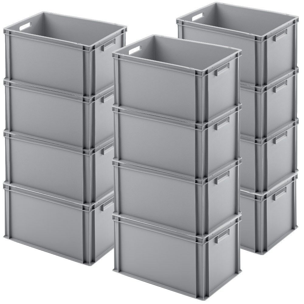 12x Eurostapelbehälter mit Durchfassgriffen, LxBxH 600x400x320 mm, grau