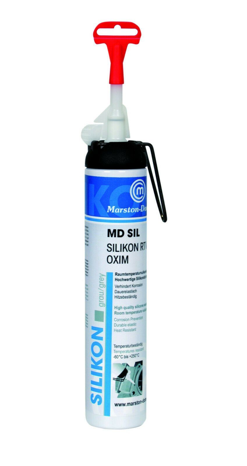Marston-Domsel MD-SIL Silikon-Dichtmasse Grau Oxim 12x 200ml Automatikkartusche Produktdetails MD SIL Oxim hat eine extrem hohe Haftung an Metallen. MD SIL Oxim verhindert Korrosion. MD SIL Oxim ist ein hochwertiger hitzefester, neutralvernetzender Silikon-Dichtstoff welcher beständig gegen Witterun