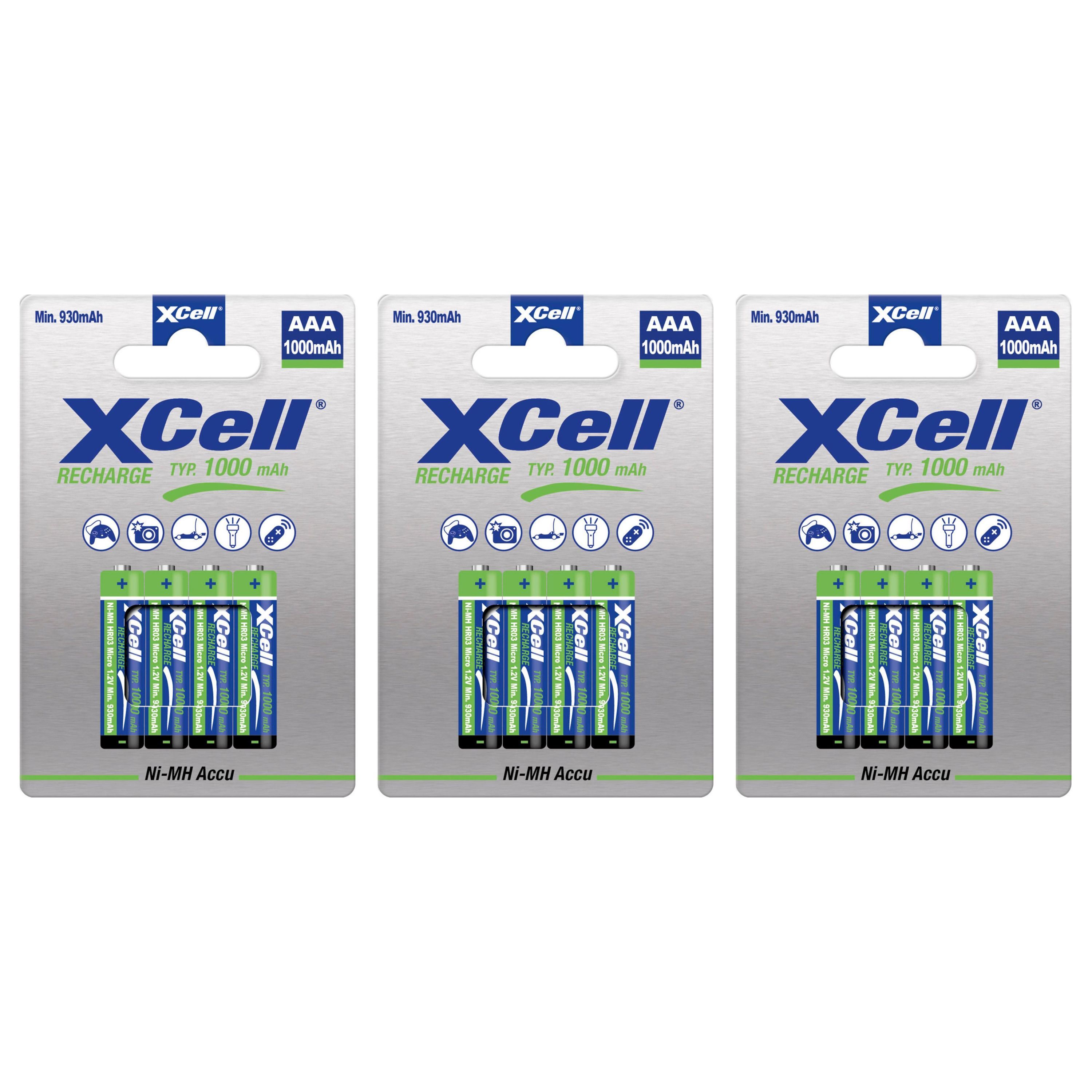 12x XCell Micro Akku Ni-MH 1,2V 1000mAh AAA im 4er Blister