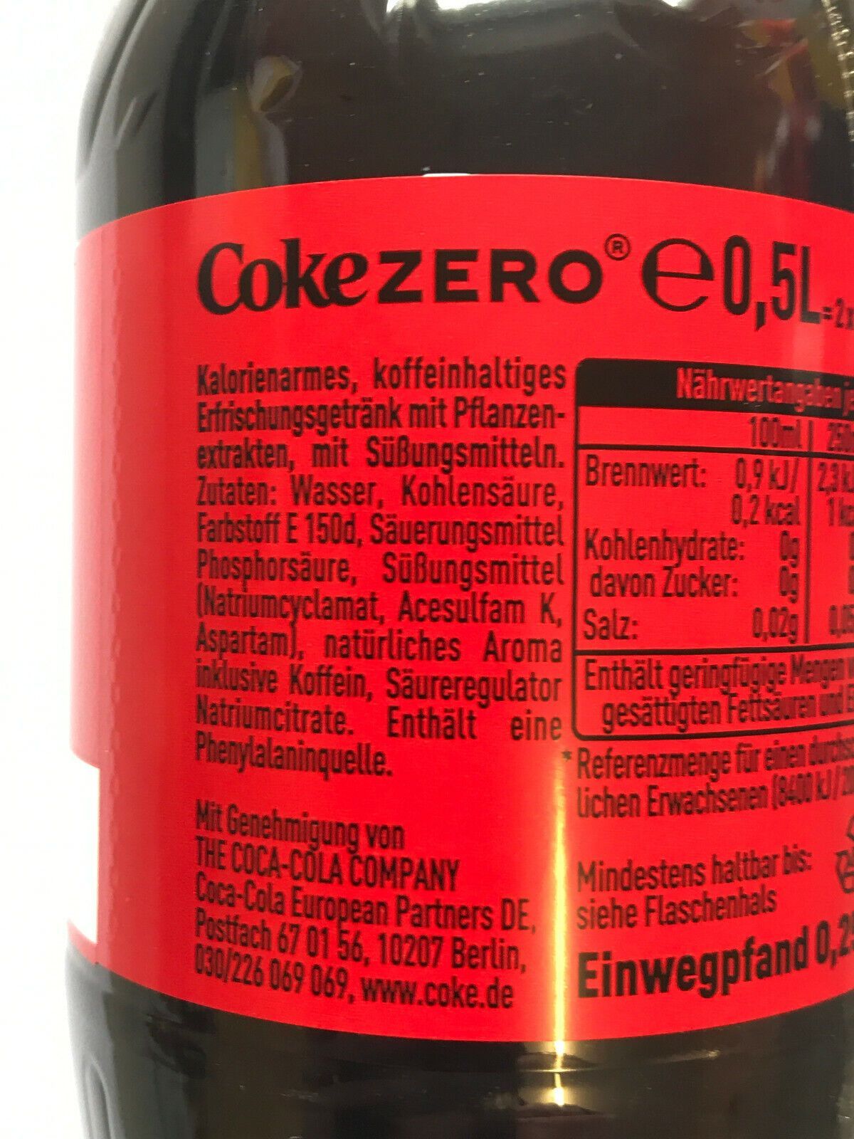 12x500ml Coca-Cola ZERO PET Flasche - Einweg