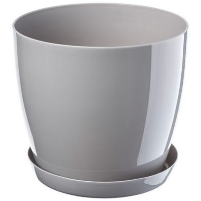 KADAX Blumentopf mit Untersetzer, aus Kunststoff, rund, 23 cm, Grau
