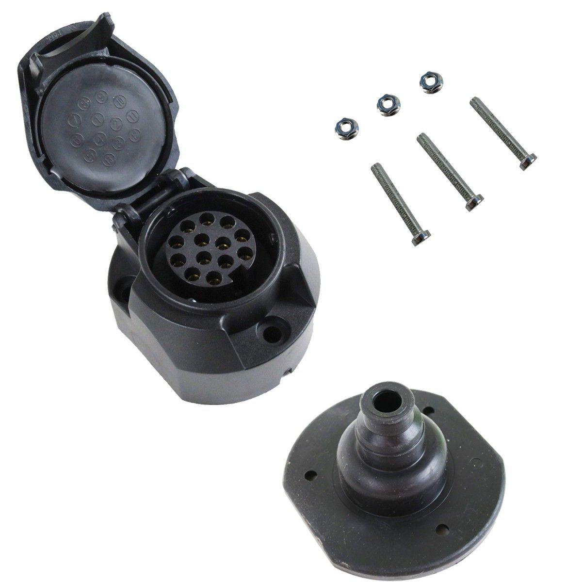 13 polig Anhänger KFZ Steckdose Kunststoff m. Abschaltkontakt Dichtung Schrauben