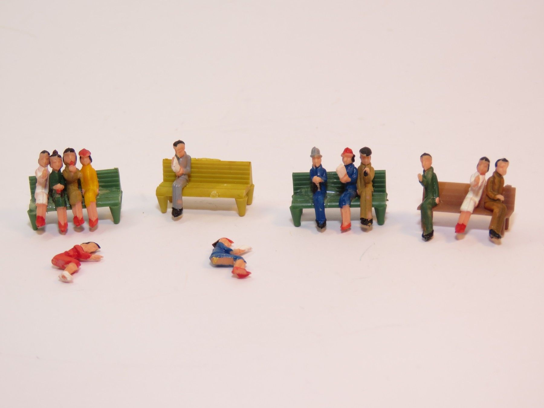 13 sitzende Passanten - Bank - Bänke - 1:87 - HO - Nr. 287