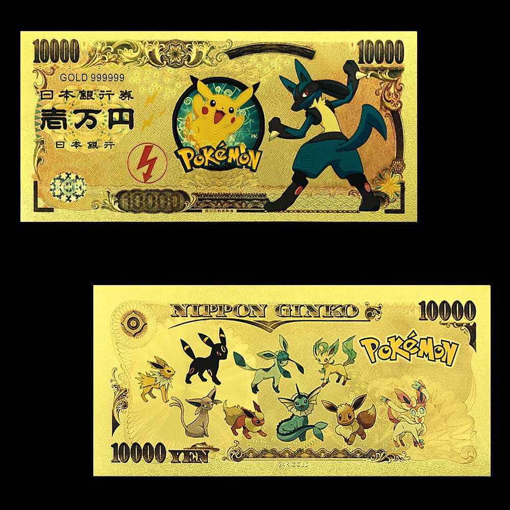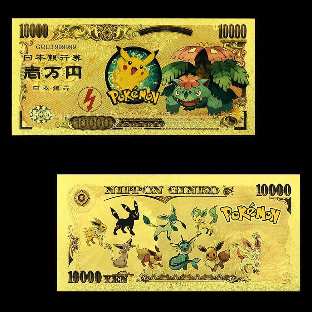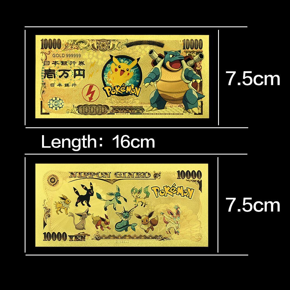 13 Stück Sammelkarten Pokemon wie abgebildet Gold Metall Optik im Banknoten Design Zu jedem Set gibt es ein Zertifikat mit dazu Eine wunderschöne Geschenk Idee oder einfach nur zum sammeln. Quality: 100% High Quality Material: PVC & Gold Foil Usage: For Collection, Home, Office Decor, Birthday ,