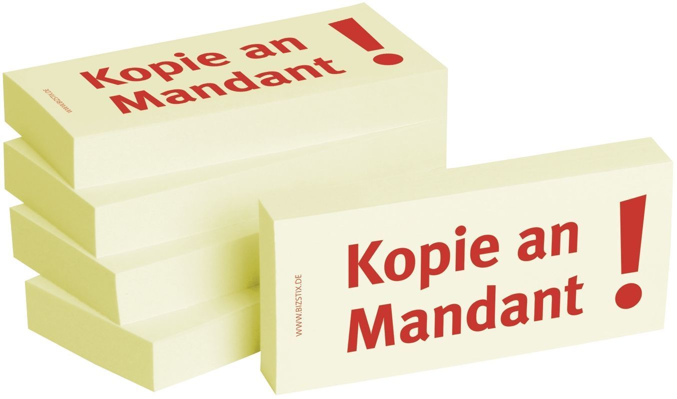 1301010155 Haftnotizen "Kopie an Mandant" - 75 x 35 mm, 5x 100 Blatt