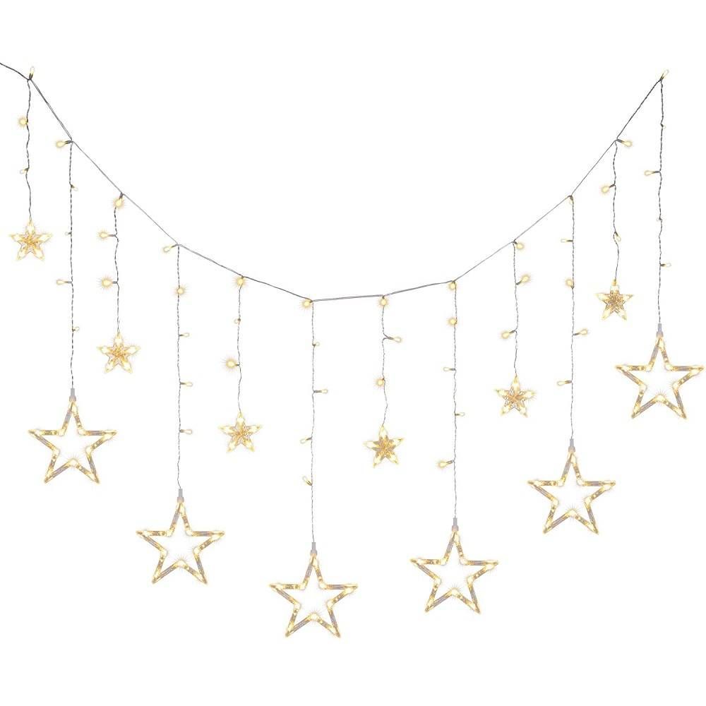 138er LED Lichtervorhang 6 große 6 kleine Sterne warmweiß 165x70cm außen BA11342