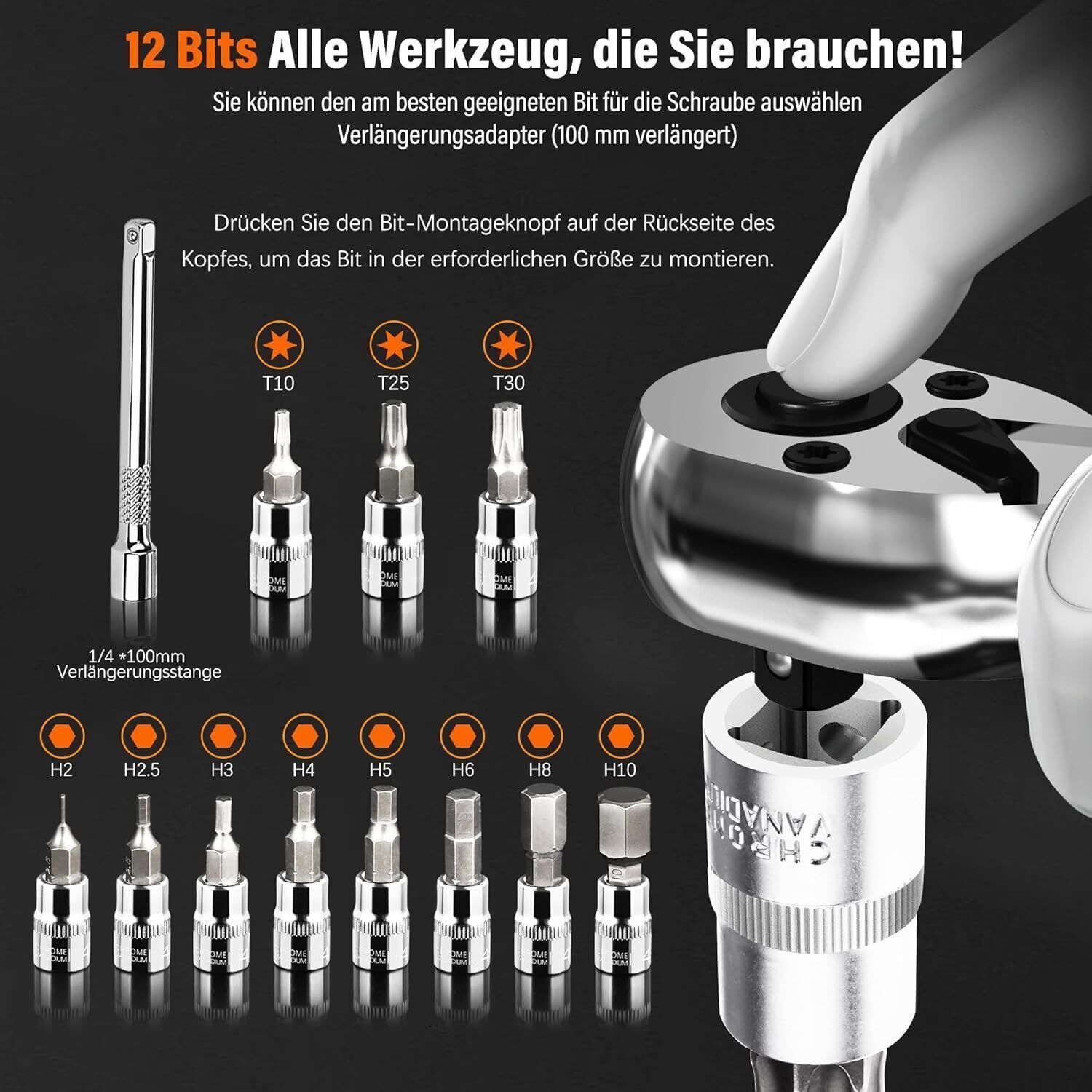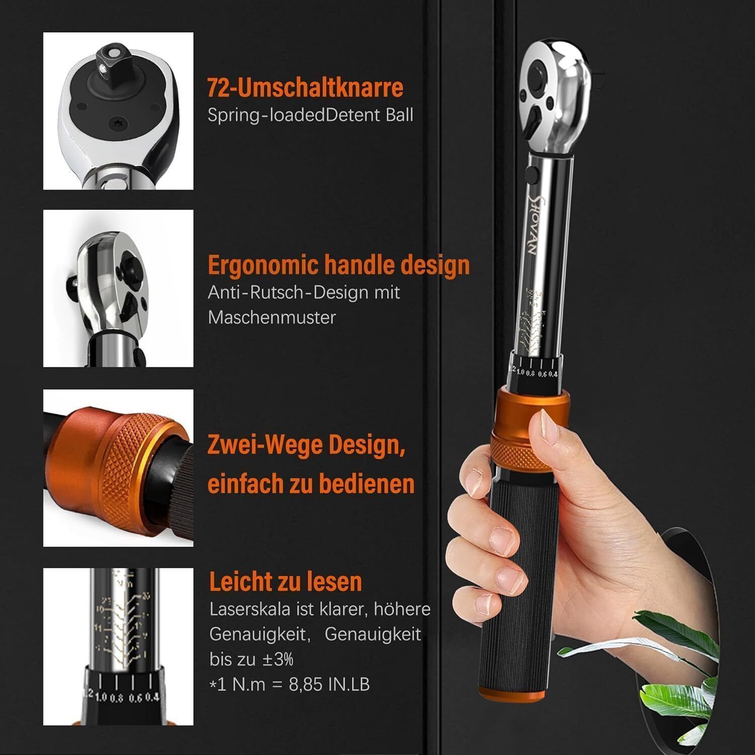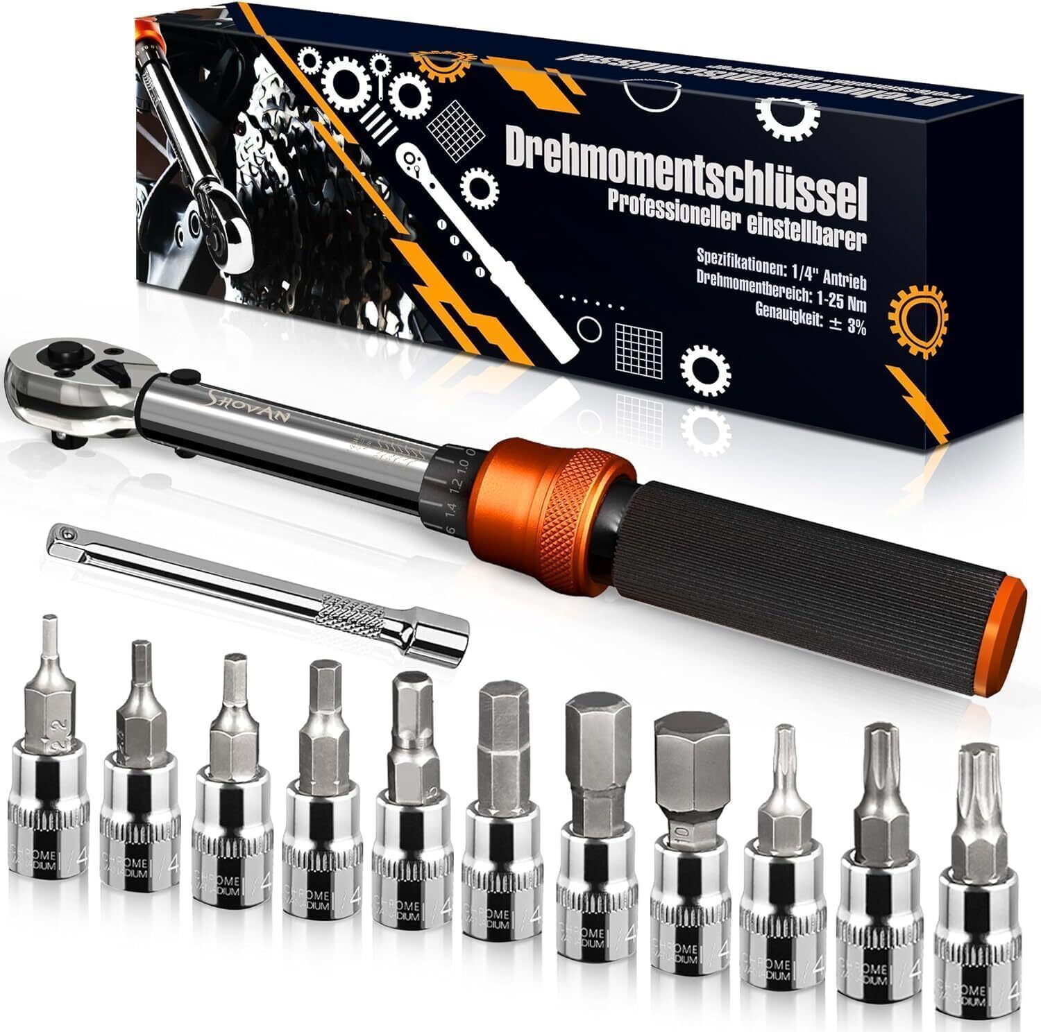 13TLG Klein Drehmomentschléssel Fahrrad 1-25NM 1/4 Zoll Torque Wrench Set 72
