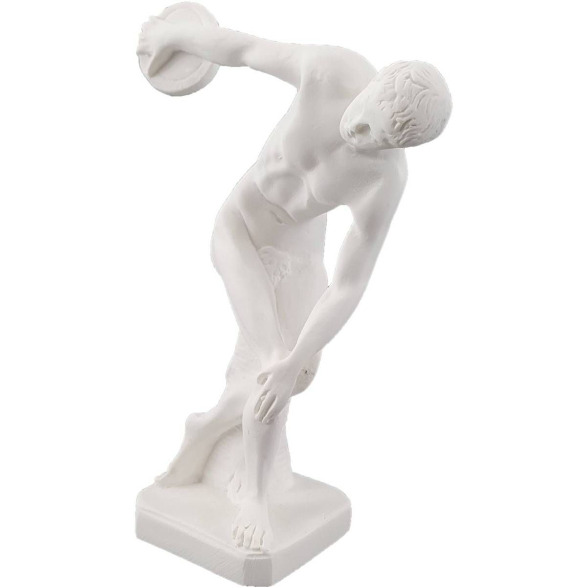 14,3cm Alabaster Figur griechischer Diskobol nach Myron Diskuswerfer Weiß