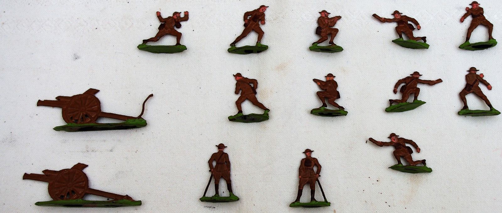 Aus der Epoche 1. Weltkrieg. Höhe: verschieden Wir schätzen das Alter der Figuren auf 80 - 90 Jahre. Wir können nicht ausschließen, daß ein Teil der Figuren von einem anderen Hersteller stammt.