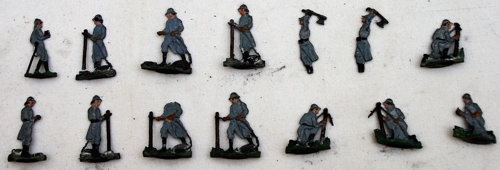 14 Zinnfiguren Französische Pionier - in Tätigkeit im Stahlhelm