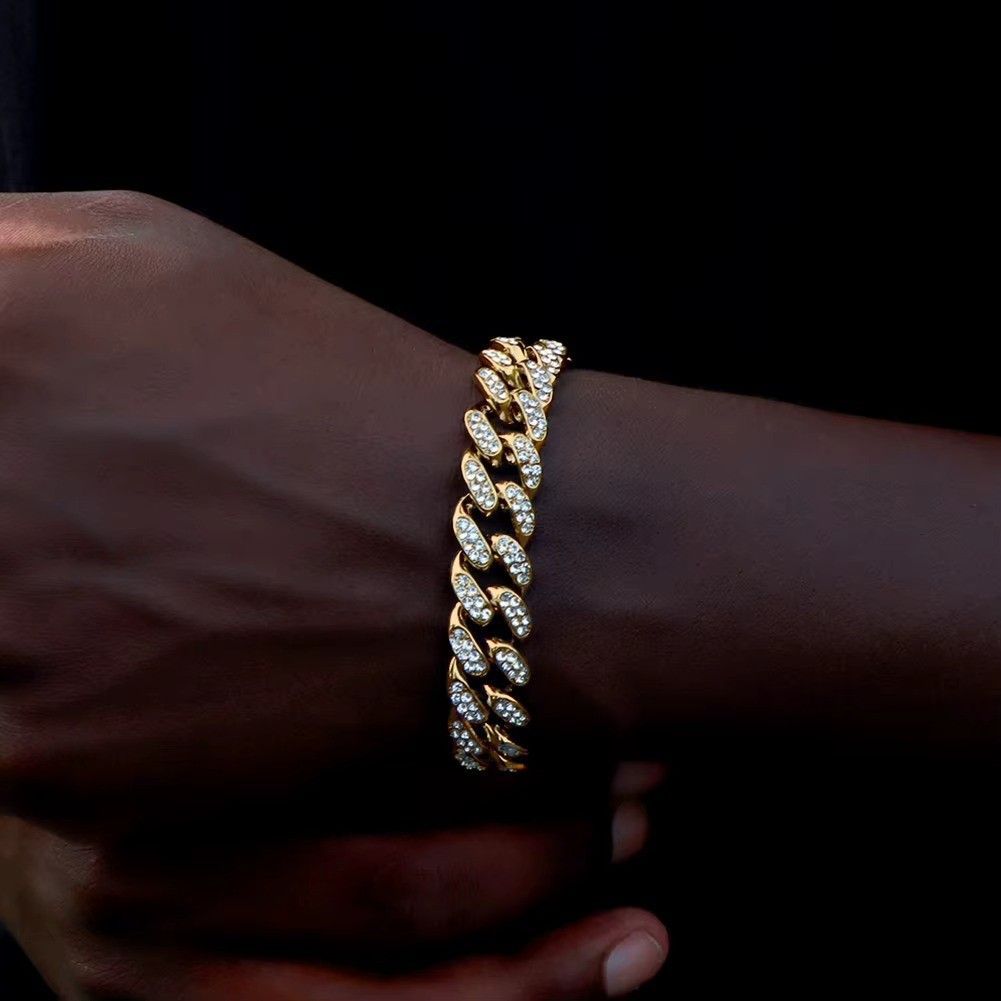 14MM Iced Prong Link Kubanische Kettenarmbänder für Männer Frauen Voller Strasssteine