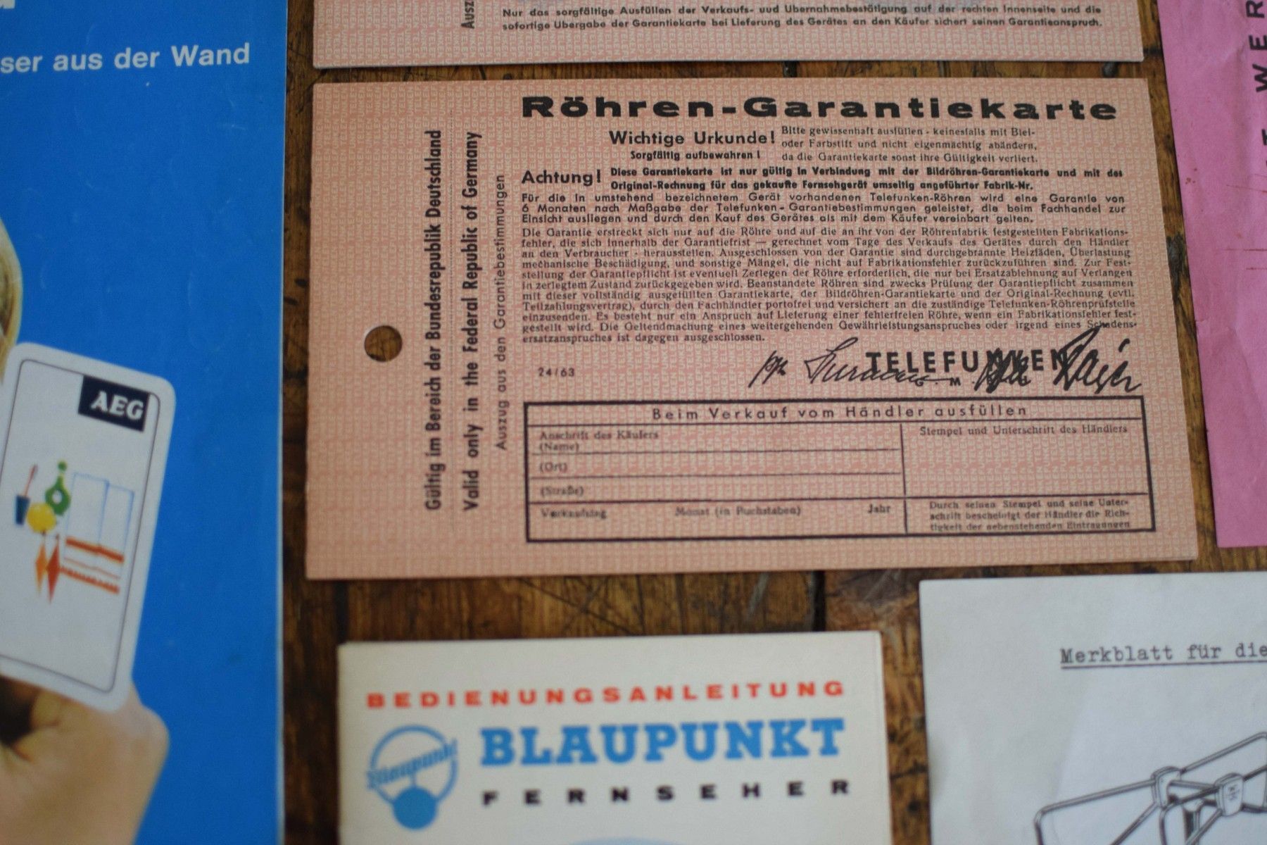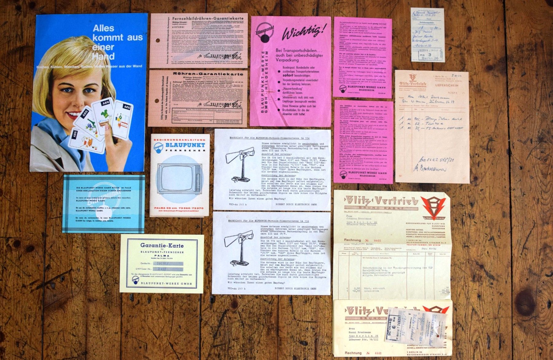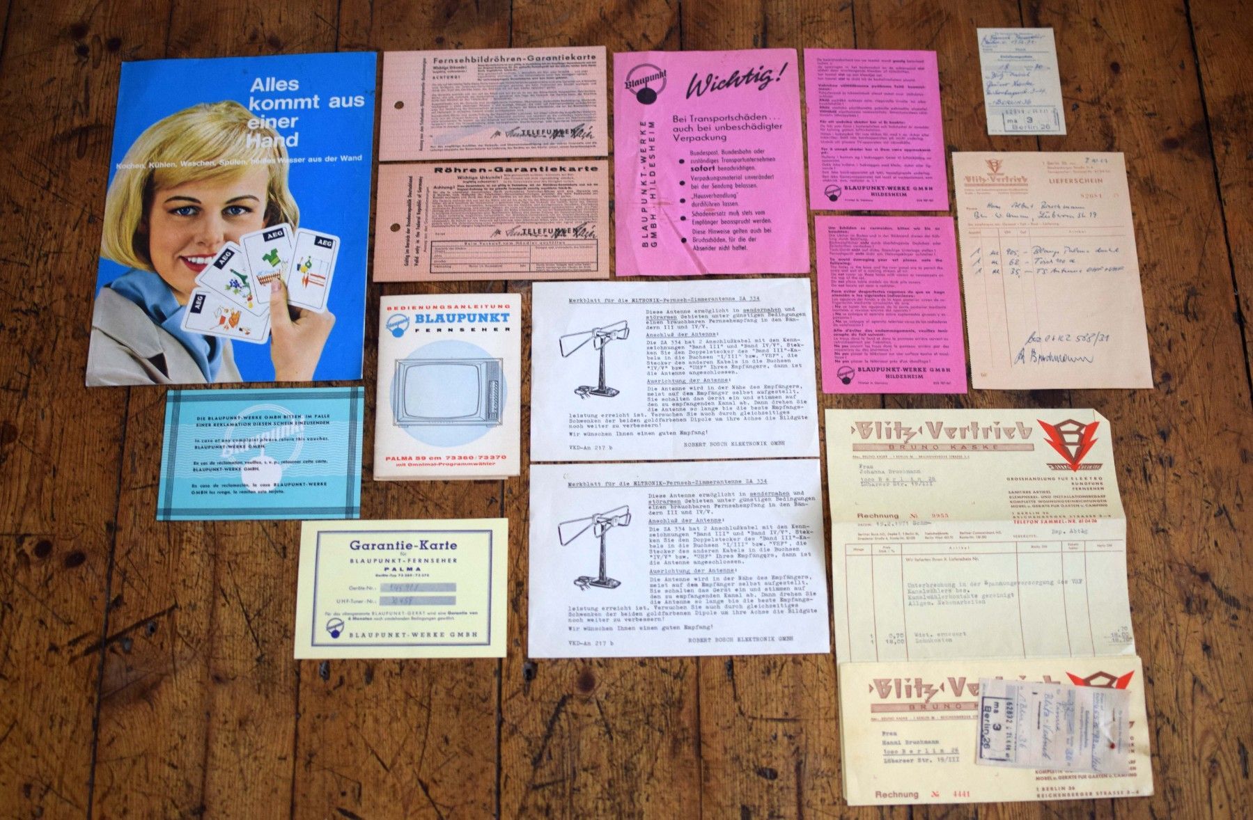 14x Blaupunkt AEG Rechnung Bedienungsanleitung Reklame Werbung 1960er Antik Alt