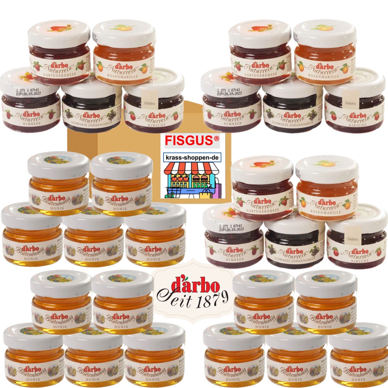 15 Mini Gläser Darbo Konfitüre (5 Sorten) & 15 Mini Gläser Darbo Blütenhonig
