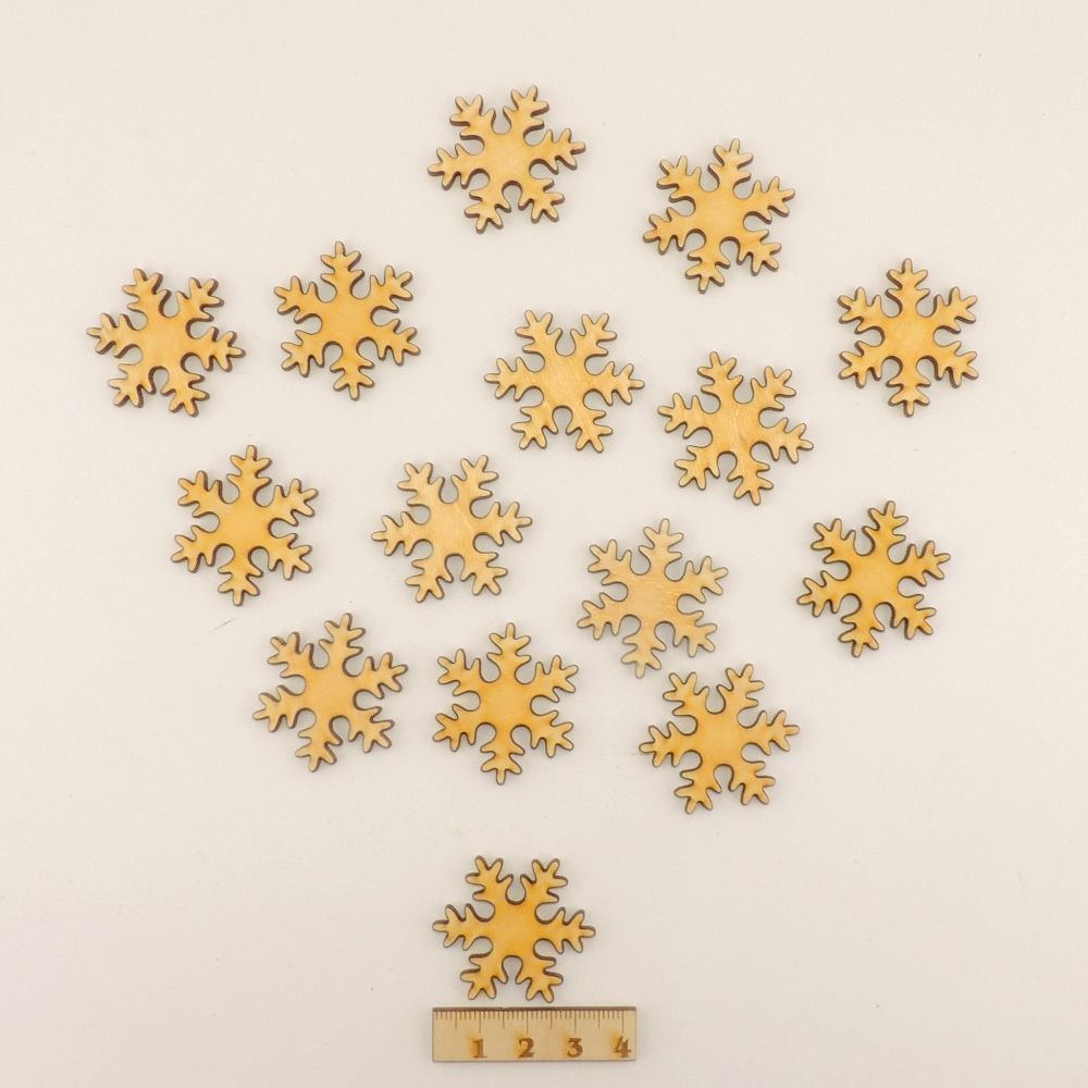 15 Schneeflocken, Eiskristall in 3,5 cm aus Holz Streuteile, Weihnachten Advent