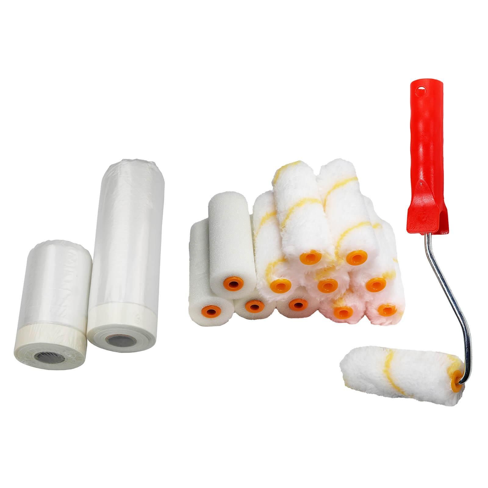 15 tlg Maler Anstreichset Steckbügel Schaumwalzen Plüschwalzen Abdeckfolie Krepp