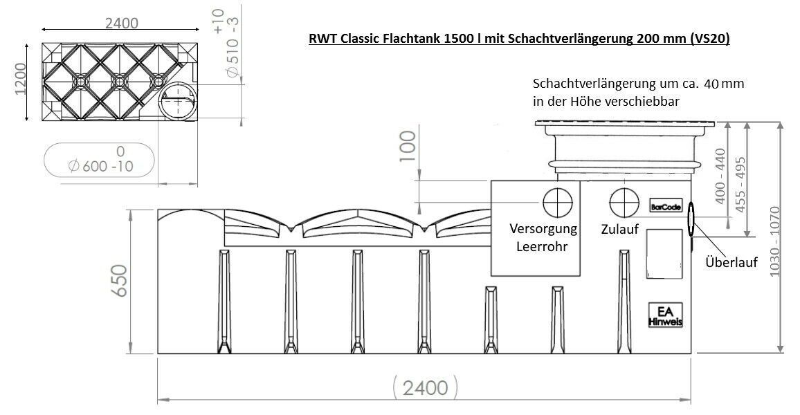 1500 L Abwassersammelgrube flacher Fäkalientank Abwassertank DIBT-Zulassung