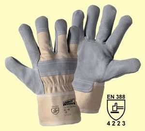 1511 - Rindspaltleder-Handschuh MEDIUM Preisbewusster Qualitäts-Handschuh mit weißem Baumwoll-Handrücken - gut einzusetzen bei Bau, Bergbau, Land- und Forstwirtschaft - gefüttert