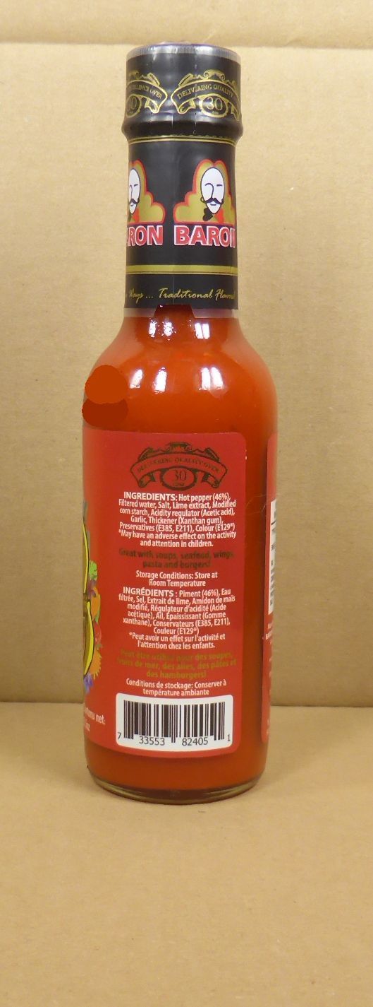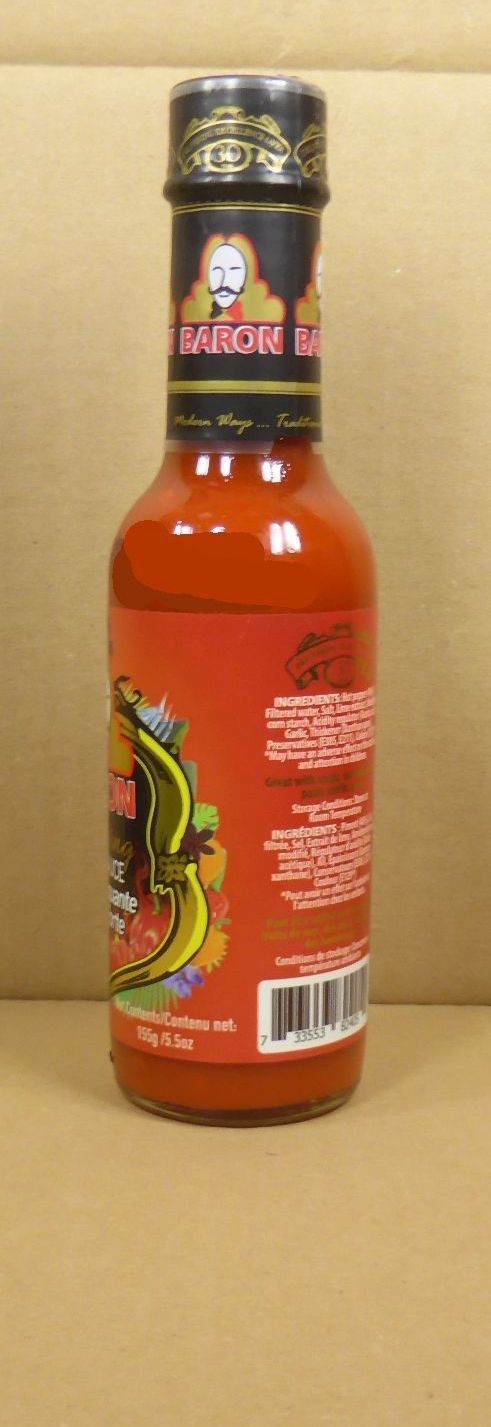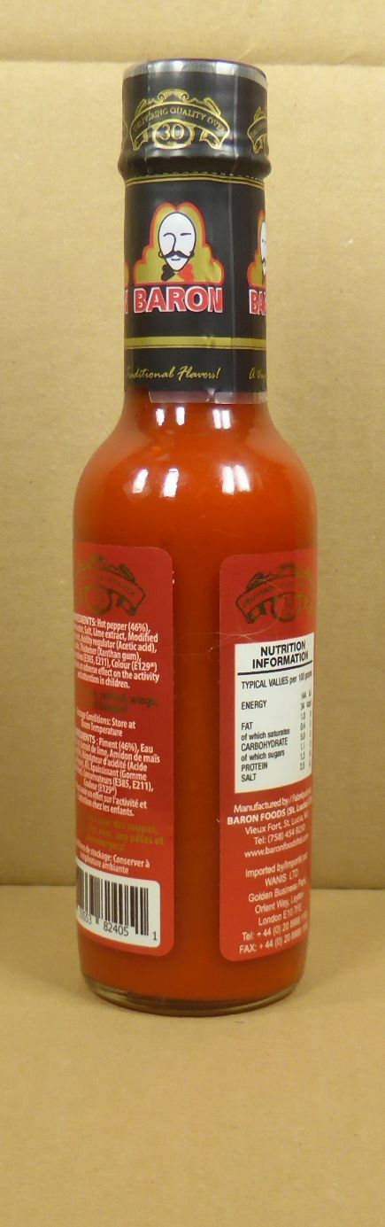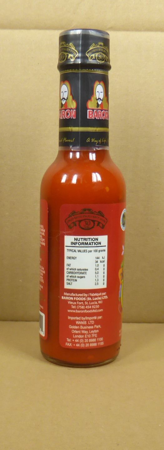 155gr./5.5oz Blazing Hot Pepper Sauce/Sauce Piquante von Baron aus St. Lucia