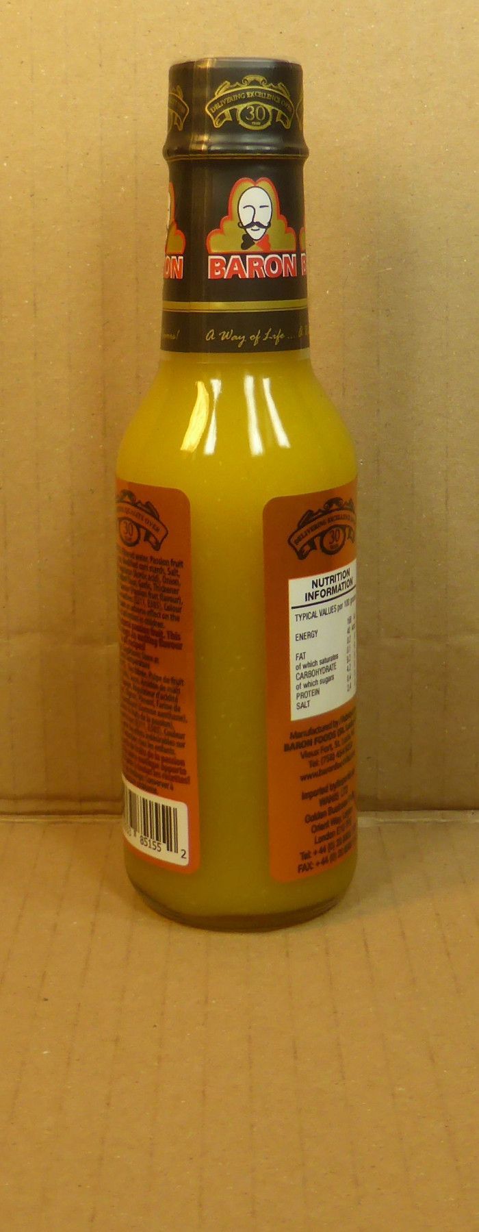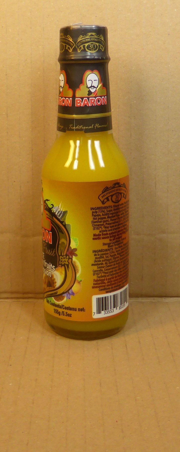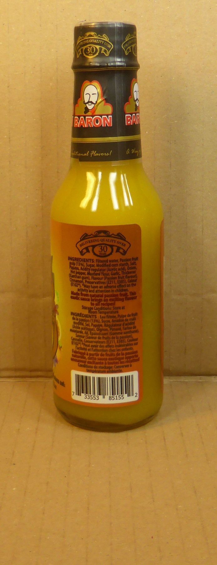155ml Passion Fruit Sauce/Sauce aux Fruits de la Passion von Baron aus St. Lucia