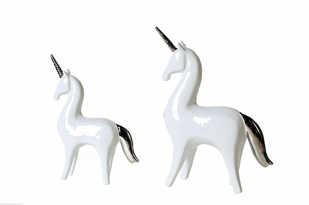 Gilde 1586970 Einhorn Paar Starlet Porzellan weiß glasiert silbernes Horn & Schweif
