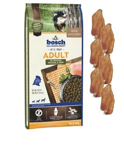 Bosch 15kg Bosch Adult Geflügel & Hirse Hundefutter + 6 x Kaninchenohren