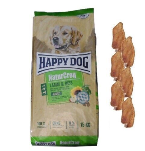 15kg Happy Dog Naturcroq Adult Lamm&Reis Hundefutter + 6xKaninchenochren