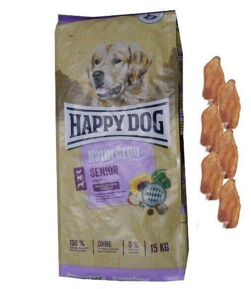 15kg Happy Dog Naturcroq Adult Lamm&Reis Hundefutter + 6xKaninchenochren