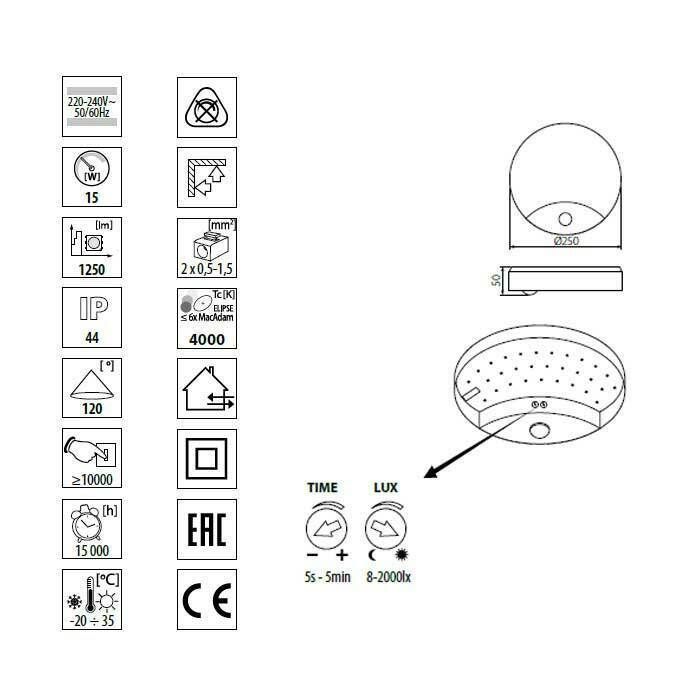 Kanlux 15W LED Wandleuchte Deckenleuchte Wandlampe Bewegungsmelder kaltweiss rund