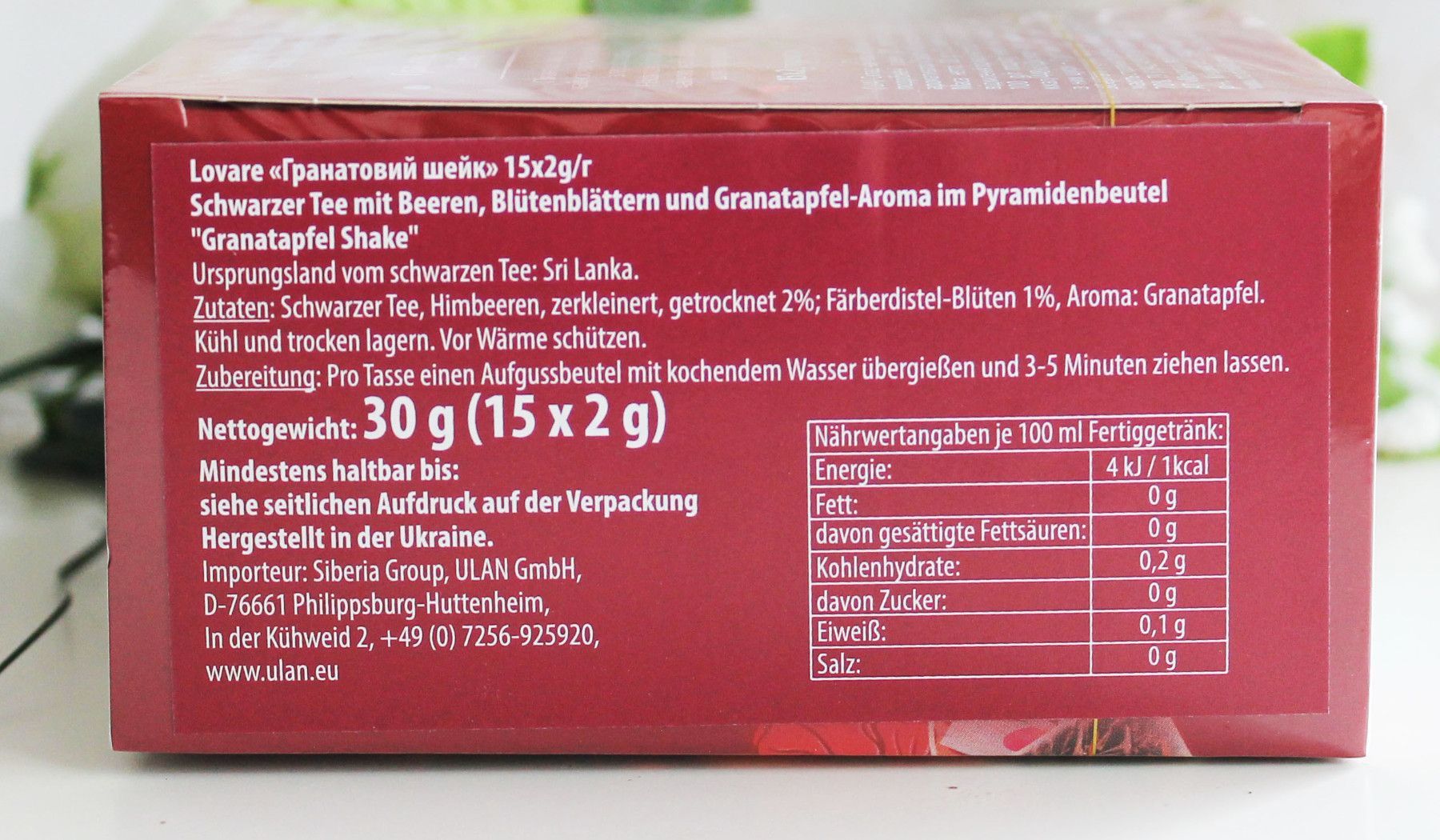 15x2g LOVARE Granatapfel Shake Schwarz Tee Pomegranate Shake Pyramidenbeutel