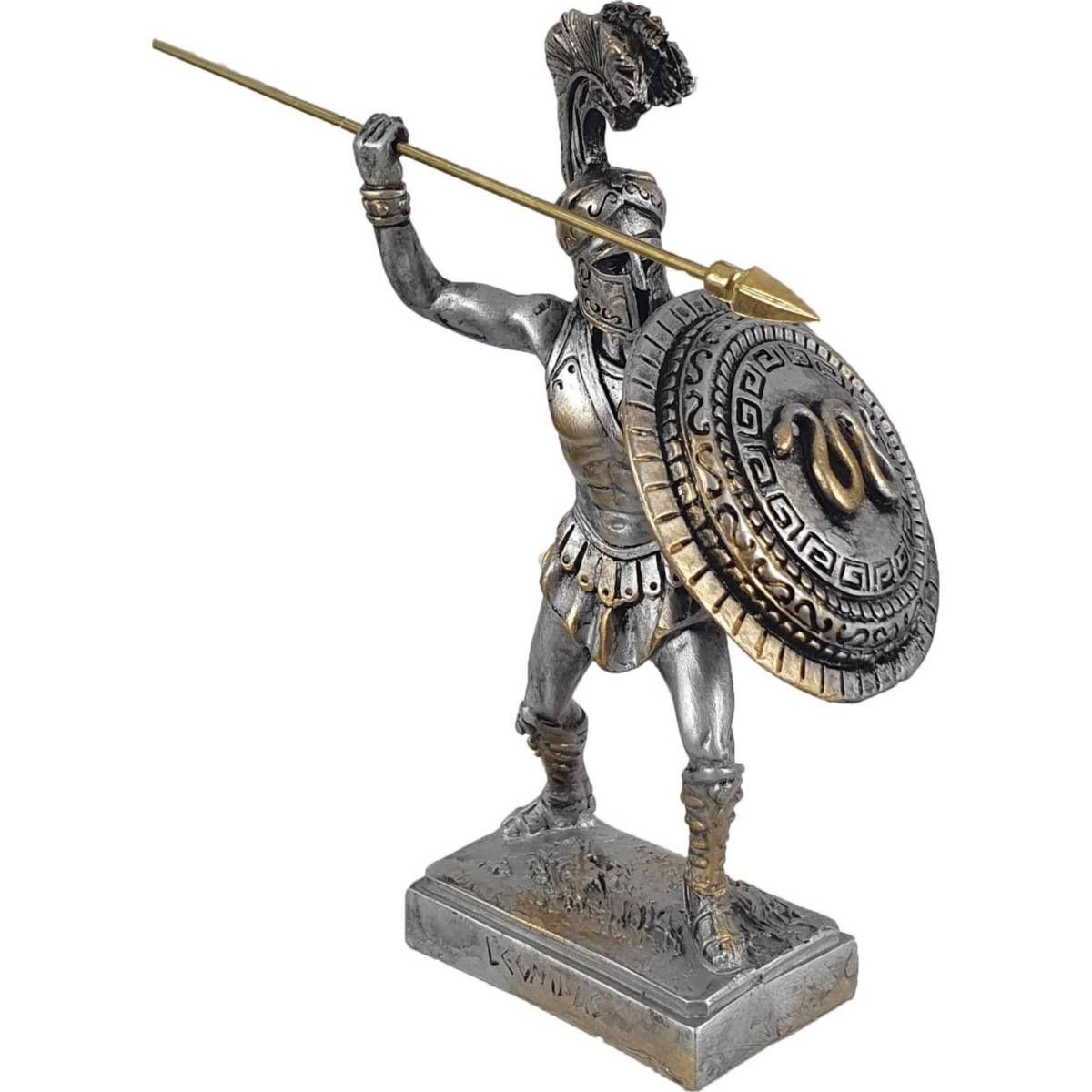 16,5cm Alabaster Figur Leonidas griechischer Held wirft Speer Silber-Gold