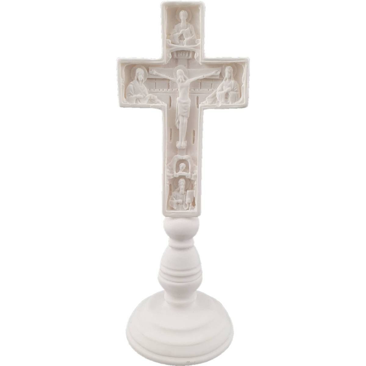 16,5cm Alabaster Figur Reliefartiges heiliges Kreuz Jesus Weiß