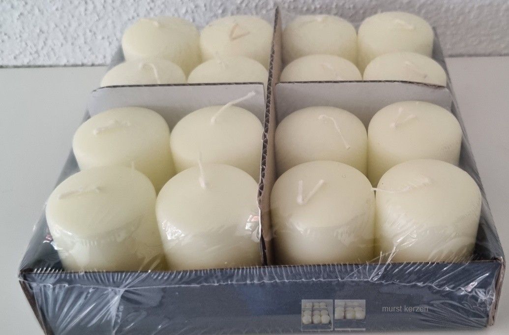 16 Stück Stumpenkerzen 60/40mm Farbe elfenbein